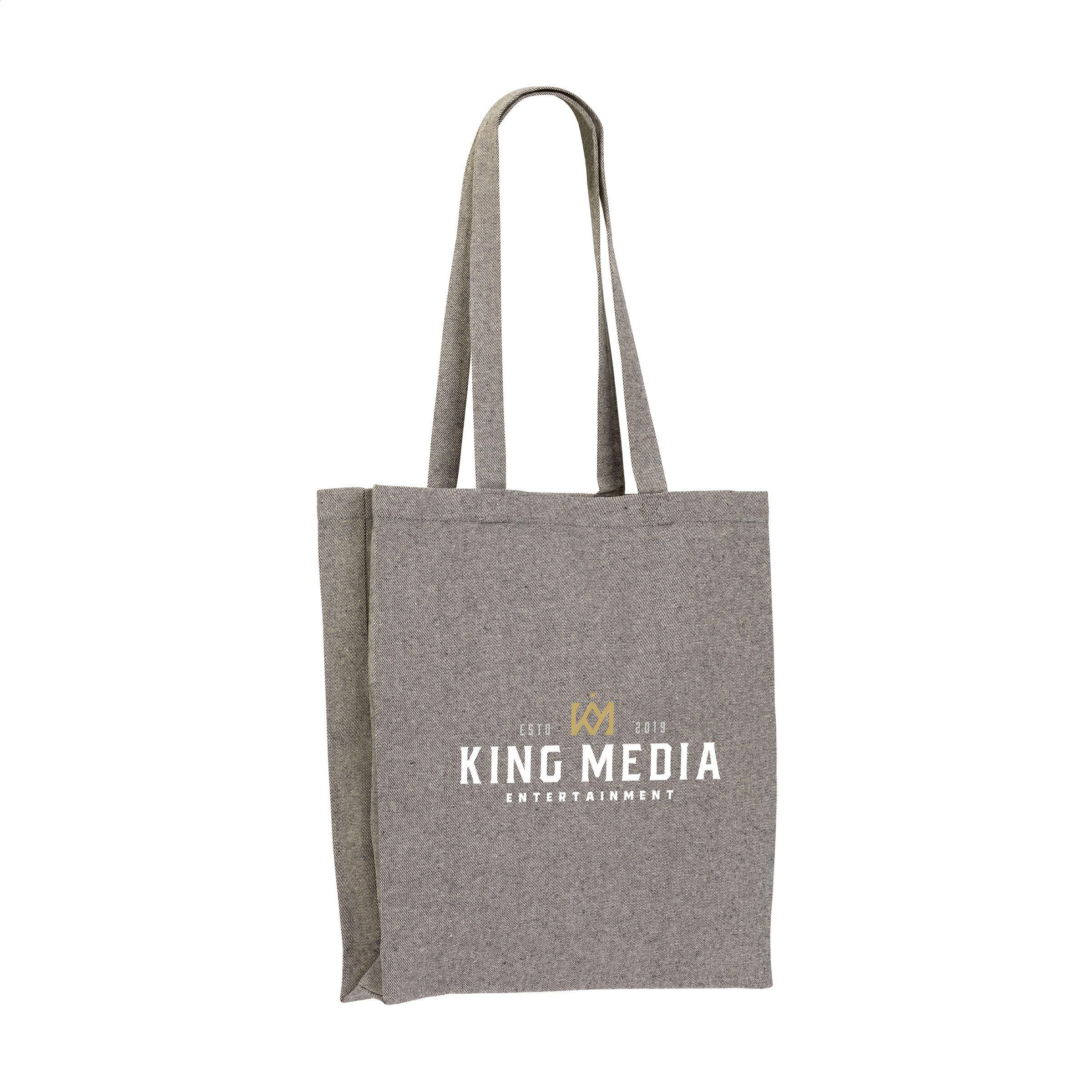 Einkaufstasche mit langen Griffen, aus 80% meliertem, recyceltem Baumwoll-Segeltuch und 20% recyceltem Polyester (280 g/m²). GRS-zertifiziert. Recyceltes Material insgesamt: 100%. Fassungsvermögen ca. 12 Liter. Diese Baumwolle ist recycelt. Daher kann die Farbe je nach Produkt variieren.