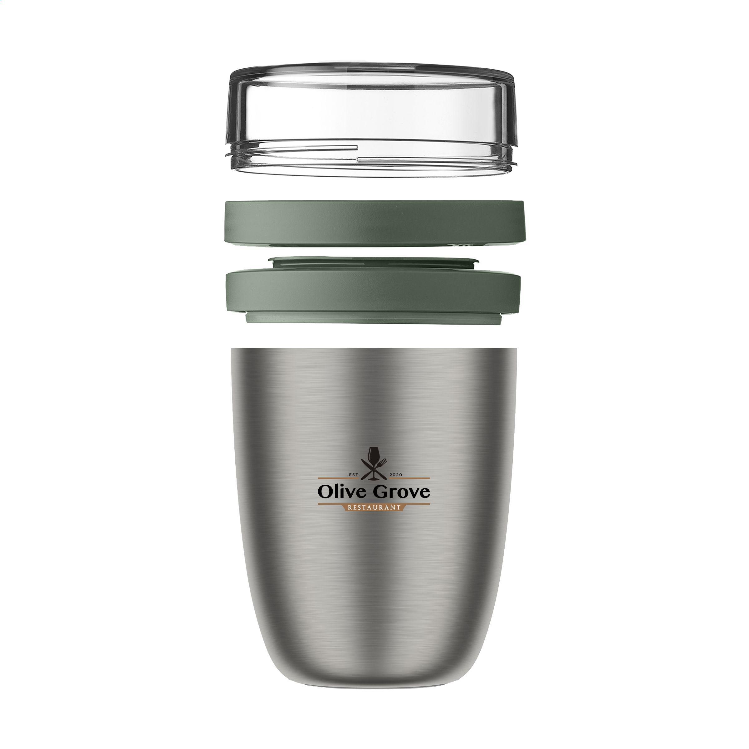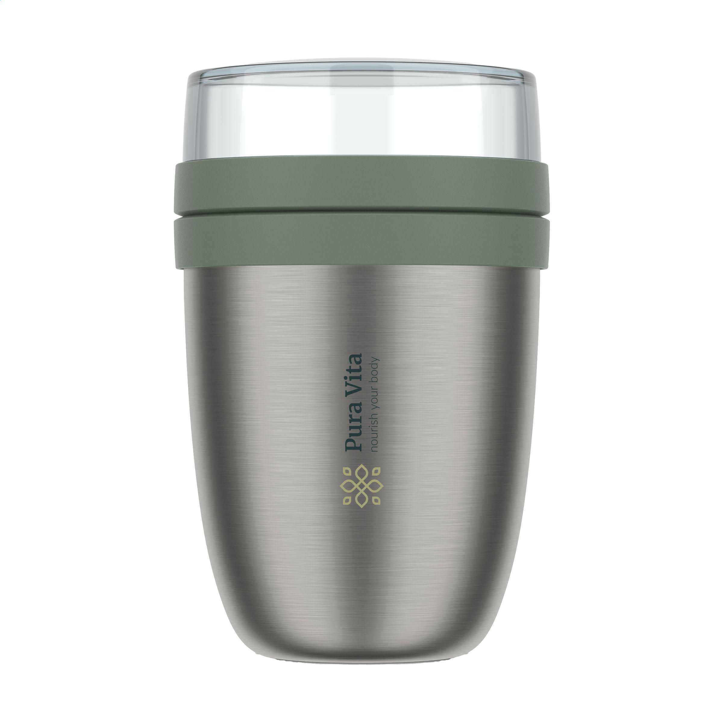 Doppelwandiger, vakuumisolierter Edelstahl-Foodbehälter der Marke Mepal. Ideal zum Kühlen von Joghurt und zum Warmhalten von Suppe. Dieser auslaufsichere Becher hält Speisen 6 bis 8 Stunden warm und bis zu 12 Stunden kalt. Ein praktisches Produkt zum Mitnehmen für Ihr Mittagessen oder Ihren Snack zwischendurch. Der Behälter hat zwei Teile. Durch eine Drehbewegung können Sie die beide Teiler von einander trennen. Beide Teile haben einen separaten Deckel. Die ideale Lösung, um Geschmiere beim Mischen zu vermeiden. Das Fassungsvermögen des oberen transparenten Fachs beträgt 200 ml, sodass etwa 75 g Müsli, Obst oder Croutons hineinpassen. Das Fassungsvermögen des unteren Fachs beträgt 500 ml, genug für eine großzügige Portion Suppe, Nudeln oder Joghurt. Ein hochwertiges Qualitätsprodukt. Nicht spülmaschinengeeignet. 2 Jahre Mepal Herstellergarantie. Fassungsvermögen 500 ml.LAGERBESTANDSINFORMATION: Bis zu 1.000 Stück innerhalb von 10 Arbeitstagen verfügbar. Ausnahmen vorbehalten. Mepal ist B-Corp-zertifiziert; die Kollektion wird nach den höchstmöglichen ökologischen und sozialen B-Corp-Standards hergestellt.