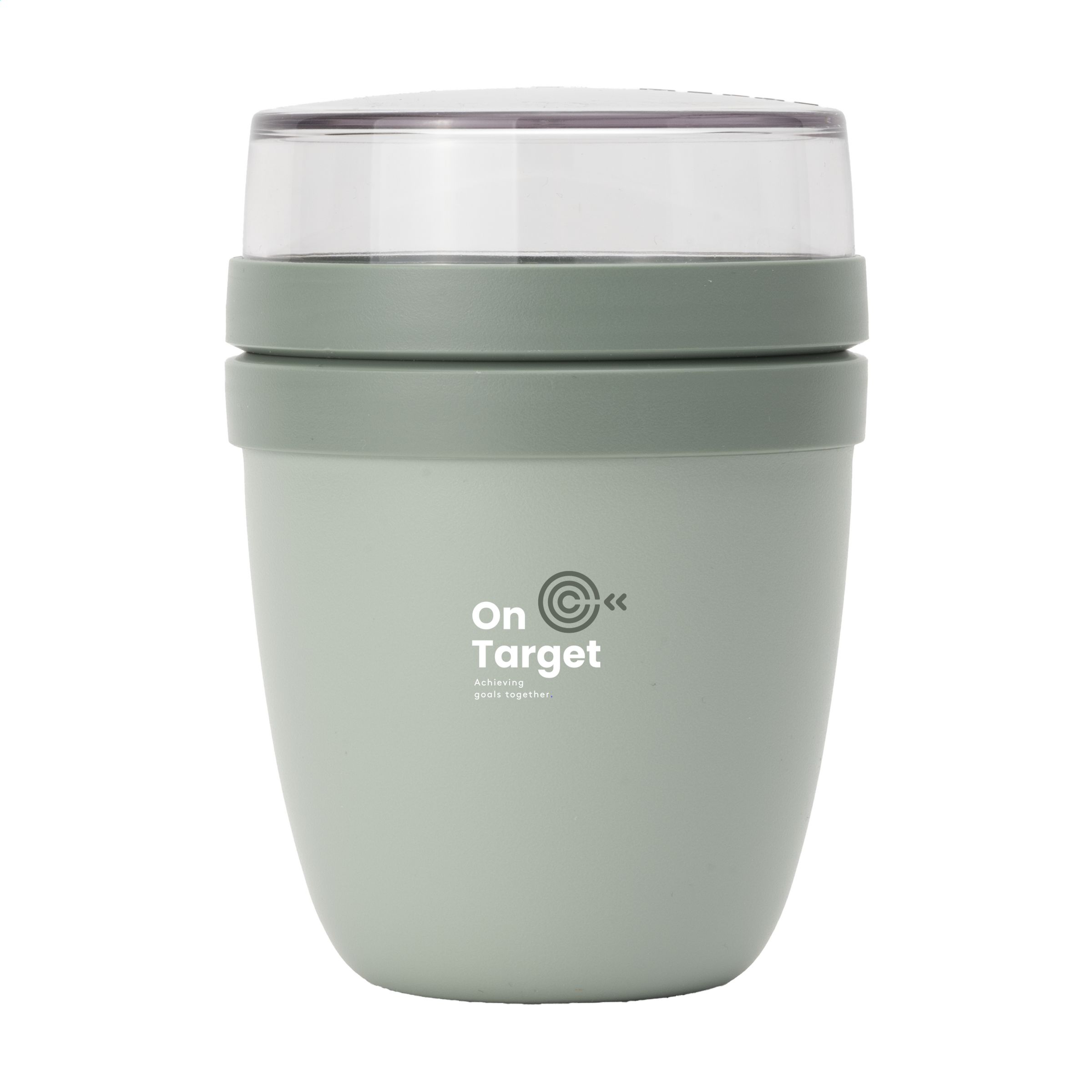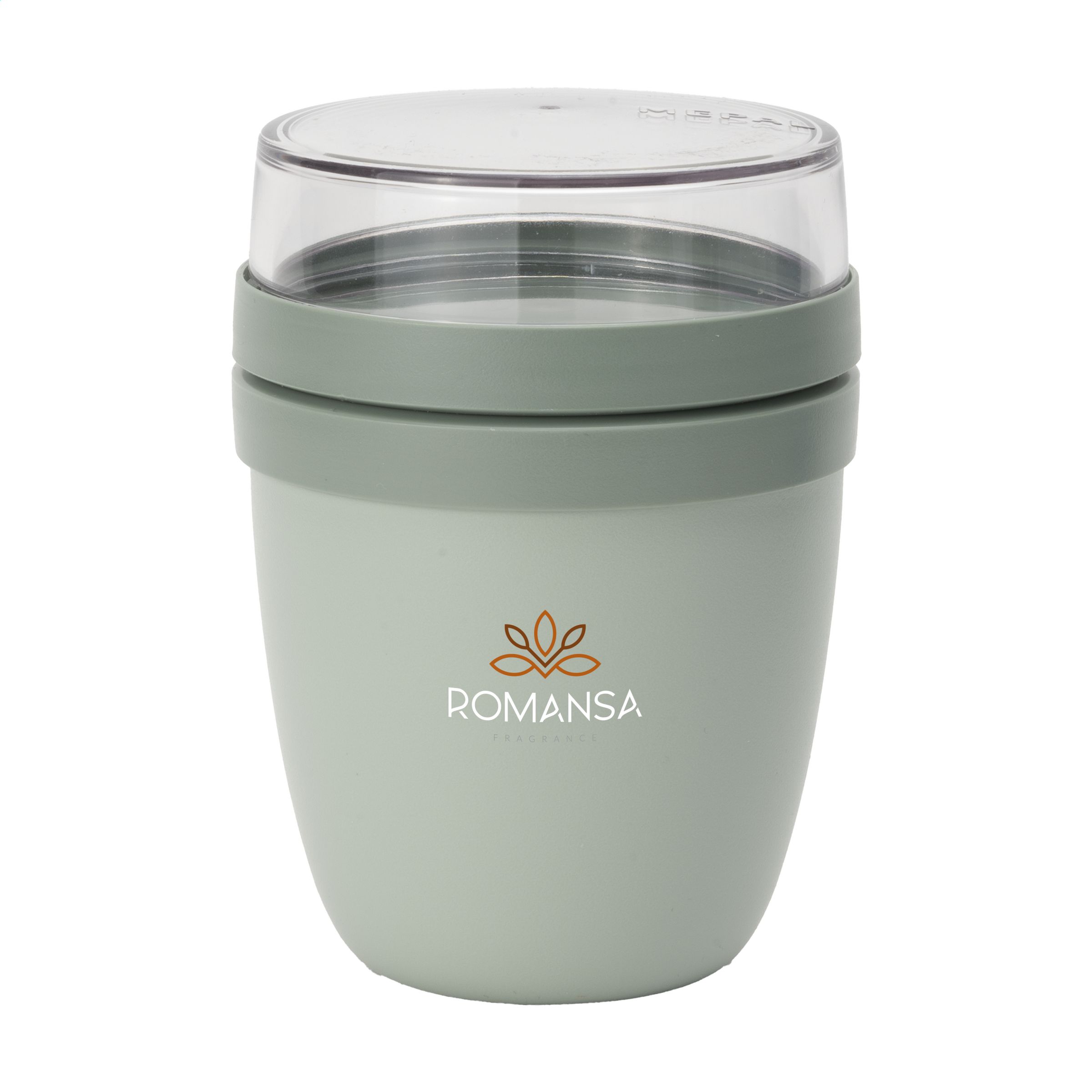 Dieser Plastikbehälter der Marke Mepal ist ein praktisches Produkt zum Mitführen von Lebensmitteln. Der Behälter hat zwei Teile. Durch eine Drehbewegung lassen sich die beiden Teile voneinander trennen. Beide Teile haben einen separaten Deckel. Die ideale Lösung, um Geschmiere beim Mischen zu vermeiden. Der Inhalt des oberen, transparenten Behälters beträgt 120 ml, d. h. dort ist Platz für ca. 50 g Müsli oder Obst. Der Inhalt des unteren Behälters bietet mit 300 ml genug Platz für eine Portion Suppe, Nudeln oder Joghurt. Ein qualitativ hochwertiges Produkt. BPA-frei, lebensmittelgeprüft und auslaufsicher. Geeignet für Mikrowelle (außer Deckel) und Gefriertruhe. 2 Jahre Mepal Herstellergarantie. Hergestellt in den Niederlanden. LAGERBESTANDSINFORMATION: Bis zu 1.000 Stück innerhalb von 10 Arbeitstagen verfügbar. Ausnahmen vorbehalten. Verpackt pro Stück.