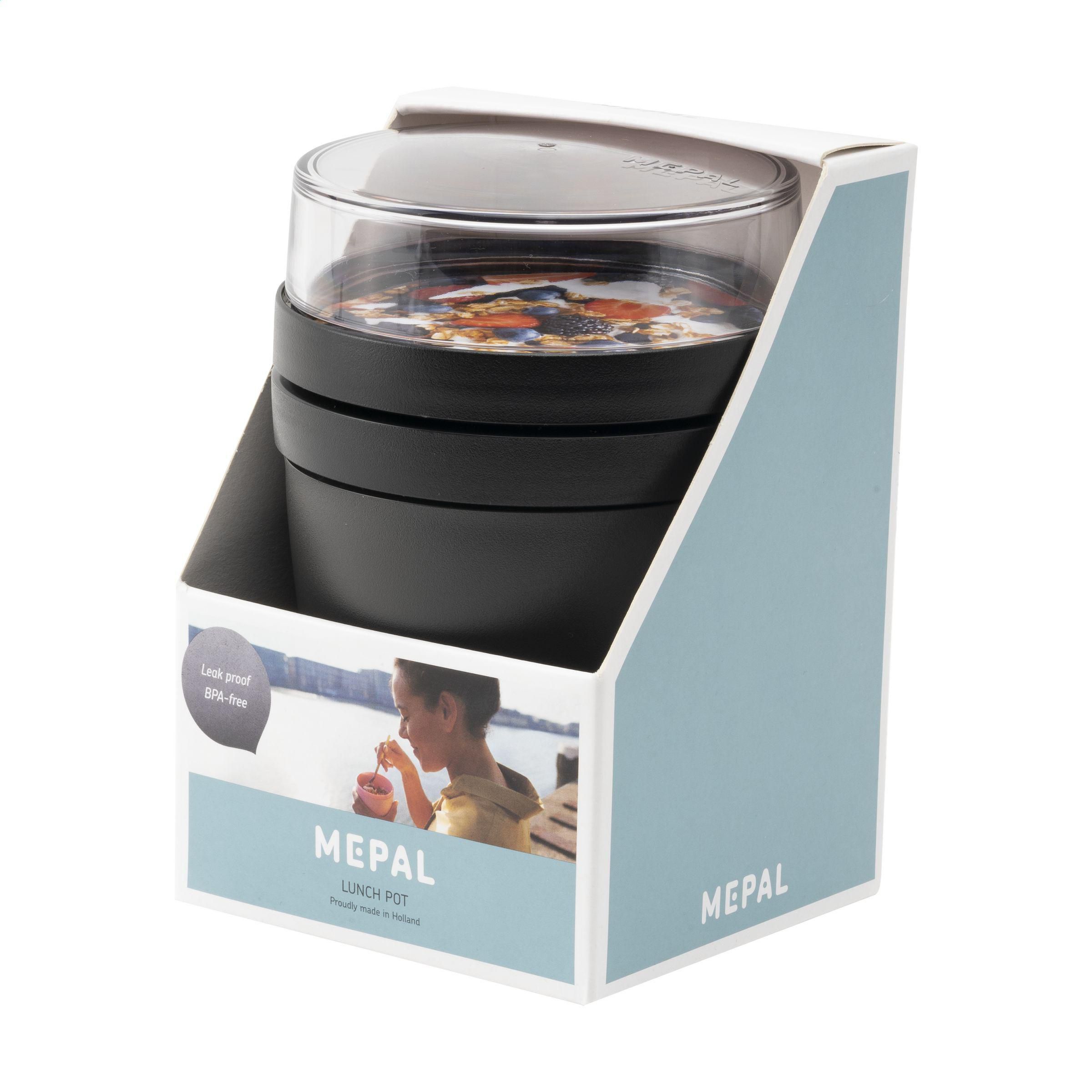 Dieser Plastikbehälter der Marke Mepal ist ein praktisches Produkt zum Mitführen von Lebensmitteln. Der Behälter hat zwei Teile. Durch eine Drehbewegung lassen sich die beiden Teile voneinander trennen. Beide Teile haben einen separaten Deckel. Die ideale Lösung, um Geschmiere beim Mischen zu vermeiden. Das Fassungsvermögen des oberen, transparenten Behälters beträgt 200 ml, d. h. dort ist Platz für ca. 75 g Müsli oder Obst. Das Fassungsvermögen des unteren Behälters bietet mit 500 ml genug Platz für eine Portion Suppe, Nudeln oder Joghurt. Ein qualitativ hochwertiges Produkt. Lebensmittelgeprüft und auslaufsicher. Geeignet für Mikrowelle (außer Deckel) und Gefriertruhe. 2 Jahre Mepal Herstellergarantie. Hergestellt in den Niederlanden. LAGERBESTANDSINFORMATION: Bis zu 1.000 Stück innerhalb von 10 Arbeitstagen verfügbar. Ausnahmen vorbehalten. Mepal ist B-Corp-zertifiziert; die Kollektion wird nach den höchstmöglichen ökologischen und sozialen B-Corp-Standards hergestellt.