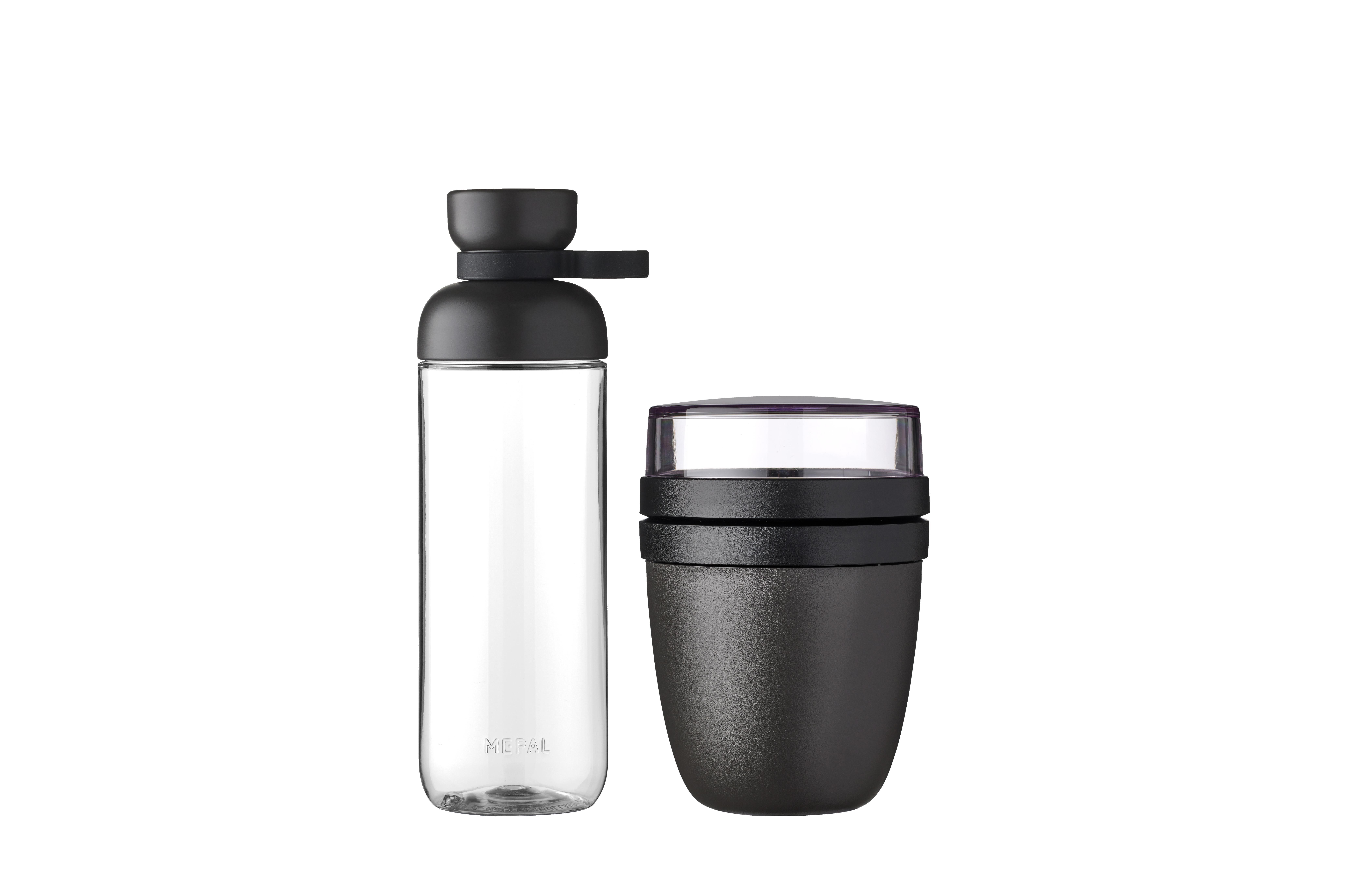 Mit diesem 2-teiligen Lunchset der Marke Mepal haben Sie immer ein abwechslungsreiches Mittagessen dabei: • Kunststoff-Lunchbox Ellipse 700 ml. Mit separaten Behältern (500 ml + 200 ml) und auslaufsicherem Verschluss. Ideal für jeden Snack wie Suppe, Nudeln oder Joghurt. • Wasserflasche Vita (700 ml) aus Tritan und PP. Mit 2 Öffnungen: einfaches trinken, nachfüllen und reinigen. Öffnen und Schließen mit einer kurzen Drehung. Silikon-Trageschlaufe. Auslaufsicher. Geeignet für kohlensäurehaltige Getränke, in diesem Fall die Flasche nicht ganz bis zum Rand füllen. Für beide Produkte gilt: 100% recycelbar. Spülmaschinengeeignet. Um den Aufdruck zu erhalten, wird Waschen von Hand empfohlen. Hergestellt in den Niederlanden.