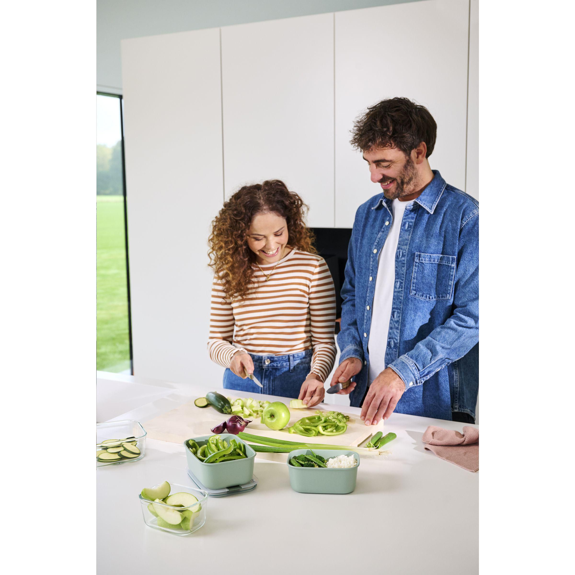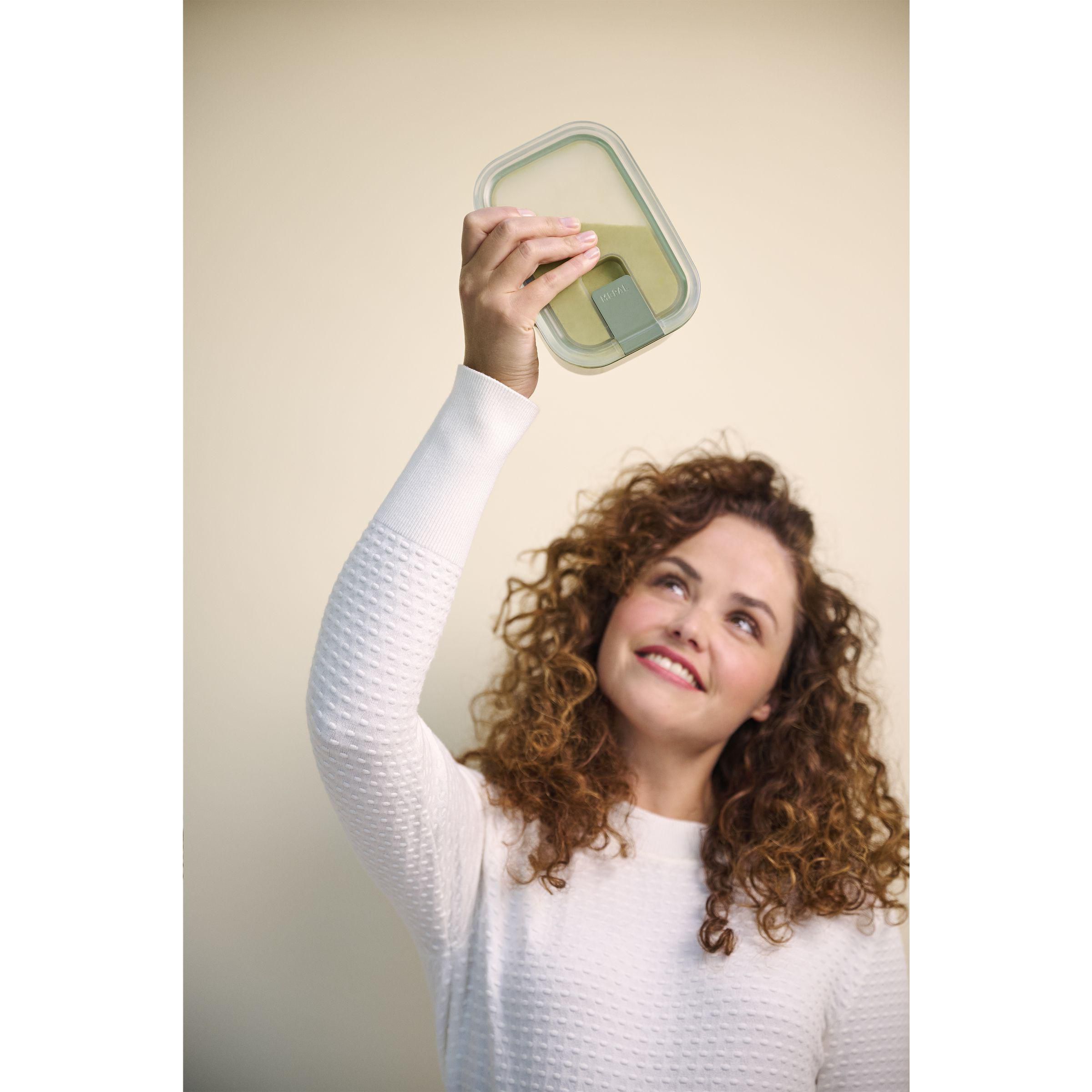Robuster und platzsparender Lebensmittelbehälter aus Kunststoff mit Klickdeckel der Marke Mepal. 100% recycelbar. Mit nur einem Klick wird die Box auslaufsicher und luftdicht. Perfekt für die Aufbewahrung von Resten, vorgeschnittenem Gemüse und Salaten, aber auch zum Aufwärmen von Speisen. Dank des transparenten Deckels können Sie auf einen Blick sehen, was sich in dieser stapelbaren Box befindet. Kompakt und leicht zu verstauen. Der Deckel hat ein einzigartiges Dampfventil, das Sie öffnen müssen, wenn Sie die Box in die Mikrowelle stellen. Diese Box ist auch für den Dampfbackofen und für den Gefrierschrank geeignet. Die Box wird mit einer 2-jährigen Mepal-Werksgarantie geliefert. Fassungsvermögen 1.000 ml. Hergestellt in den Niederlanden. LAGERBESTANDSINFORMATION: Bis zu 1.000 Stück innerhalb von 10 Arbeitstagen verfügbar. Ausnahmen vorbehalten. Mepal ist B-Corp-zertifiziert; die Kollektion wird nach den höchstmöglichen ökologischen und sozialen B-Corp-Standards hergestellt.