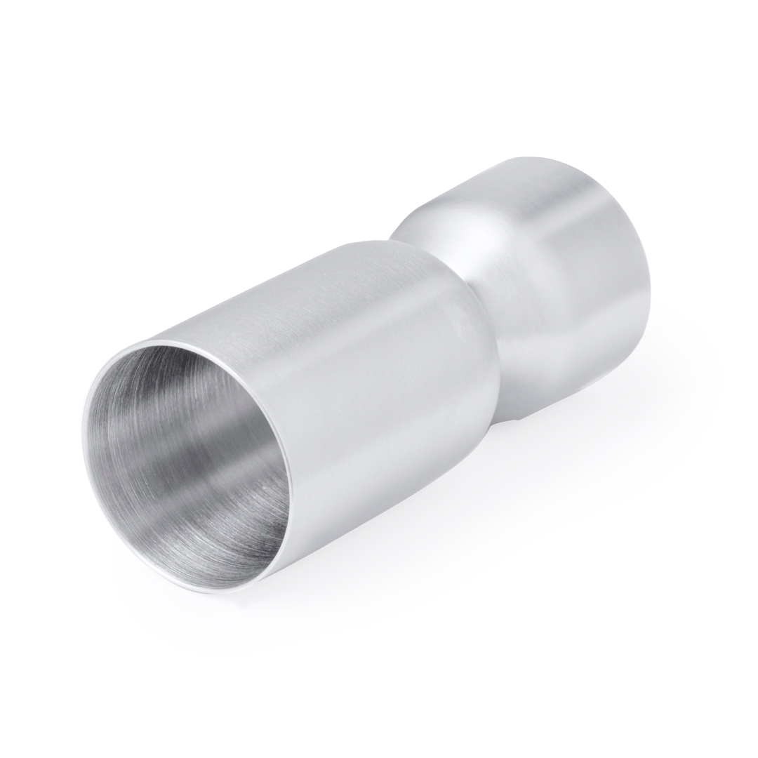 Getränkemessbecher aus Edelstahl mit mattem Finish. Speziell für das Laser-Branding entwickelt und in einer Kraftpapier-Designbox präsentiert.