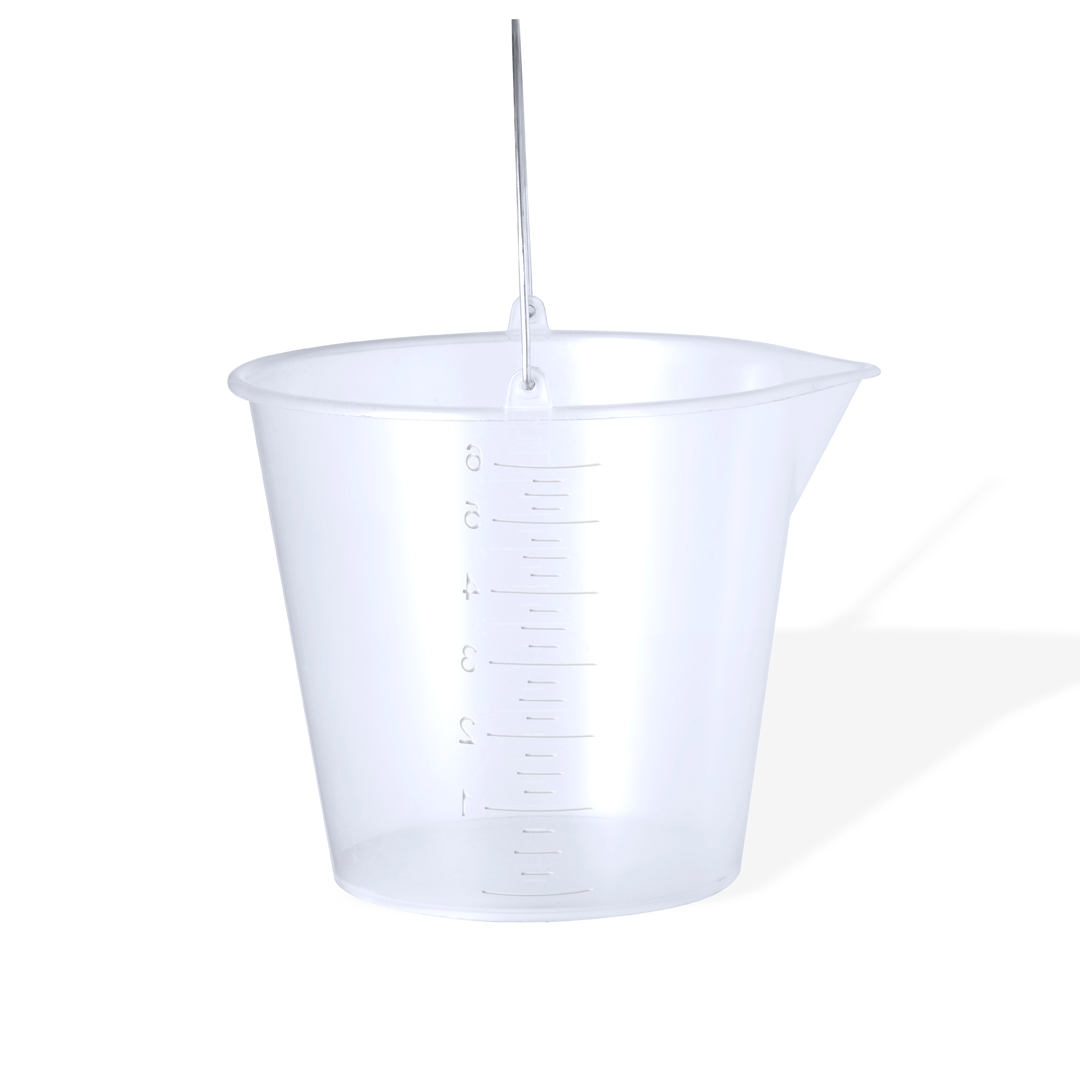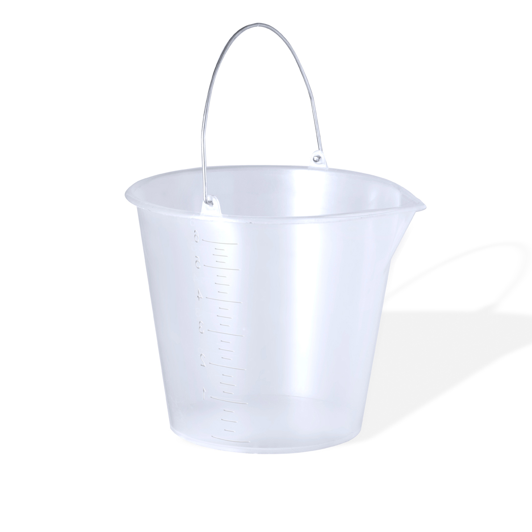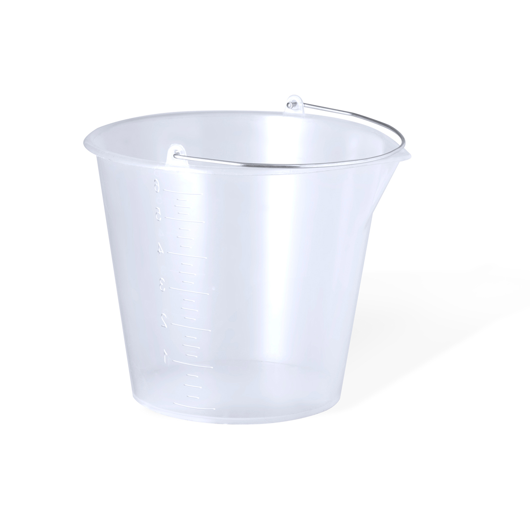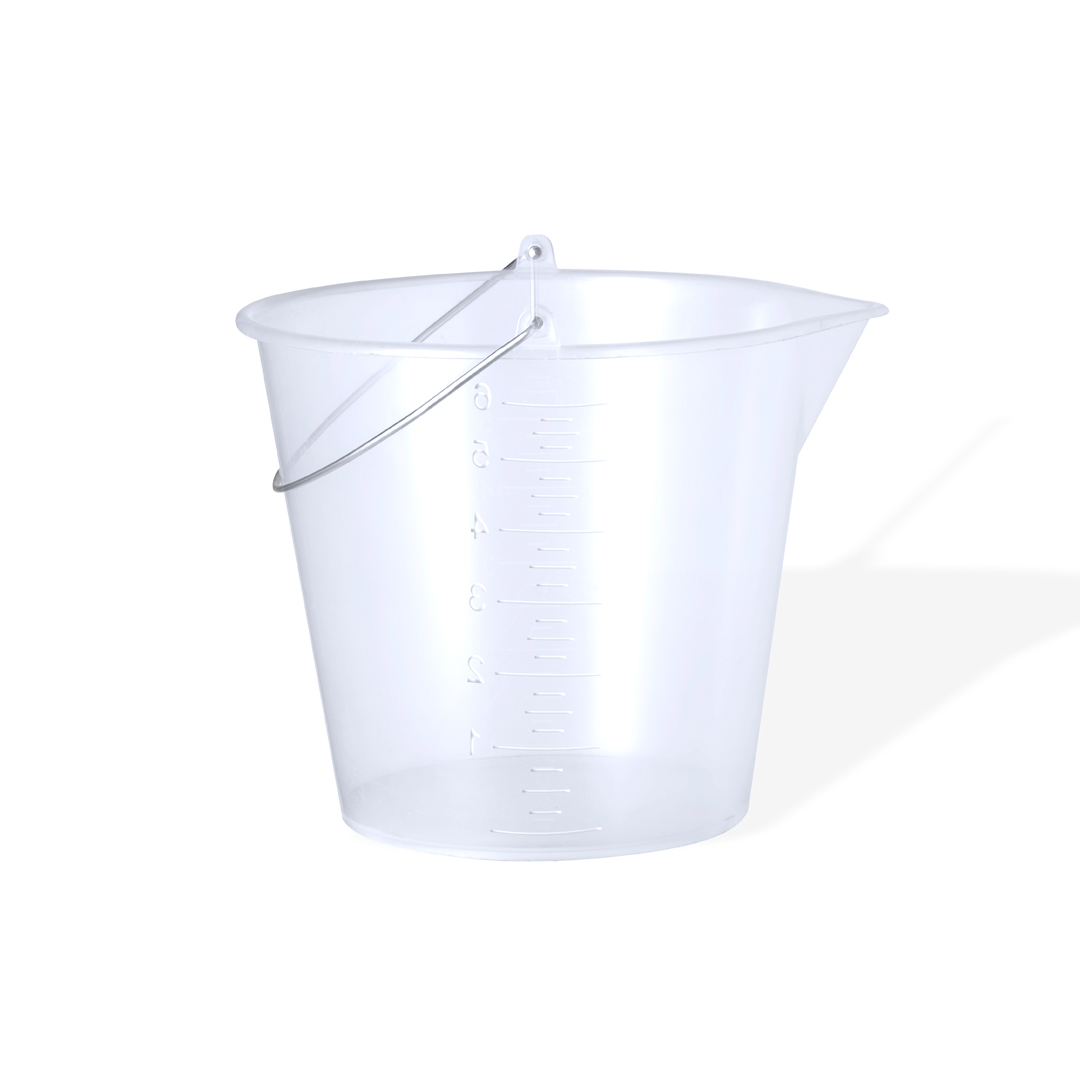 6-Liter-Eimer aus robustem, transparentem PP. Mit Metallgriff und seitlichem Messbecher in ml zum schnellen und einfachen Ablesen. Abgerundete Kontur mit Ausgießer, um ein Verschütten zu verhindern, sowie eine große Brandingfläche.