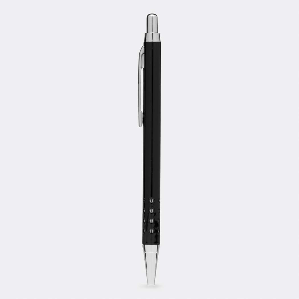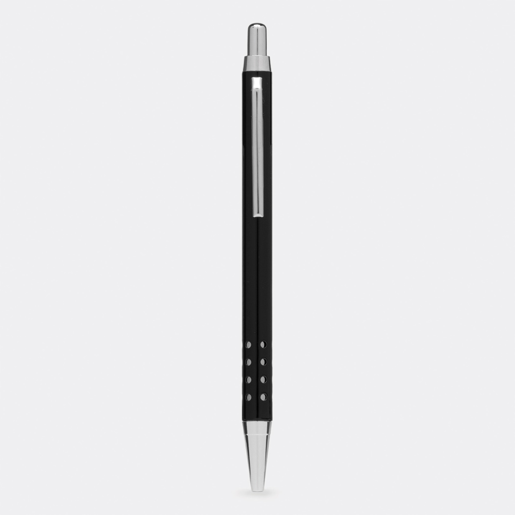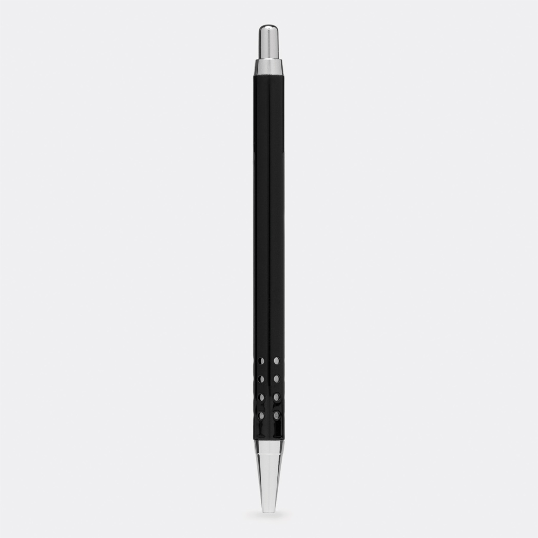 Messing-Kugelschreiber BUDAPEST: Schaft mit Loch-Design, Druckmechanismus, Großraummine, blauschreibend