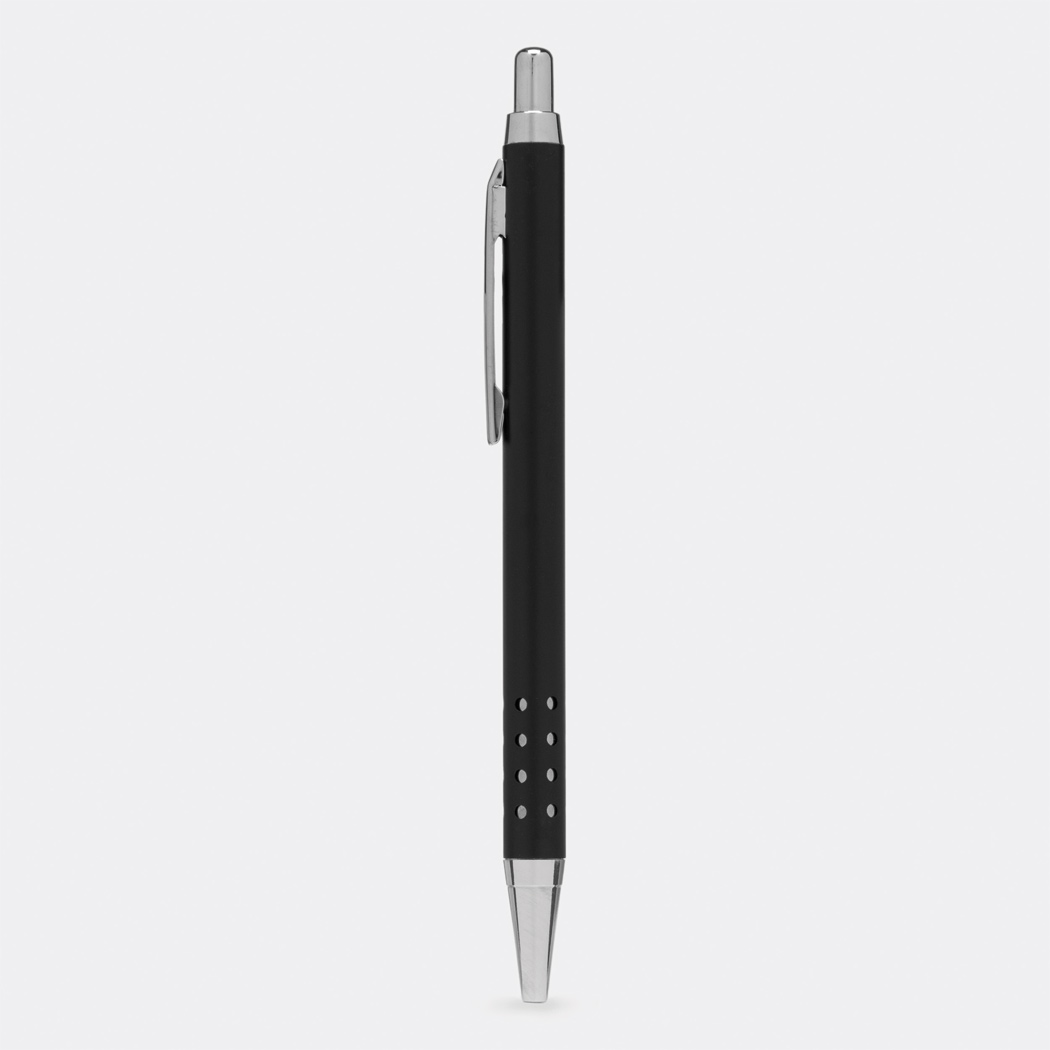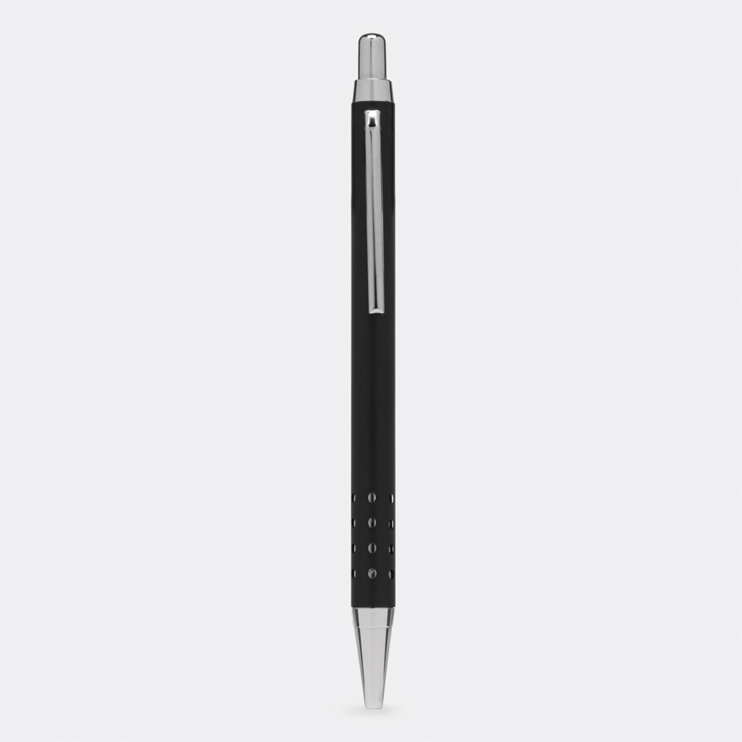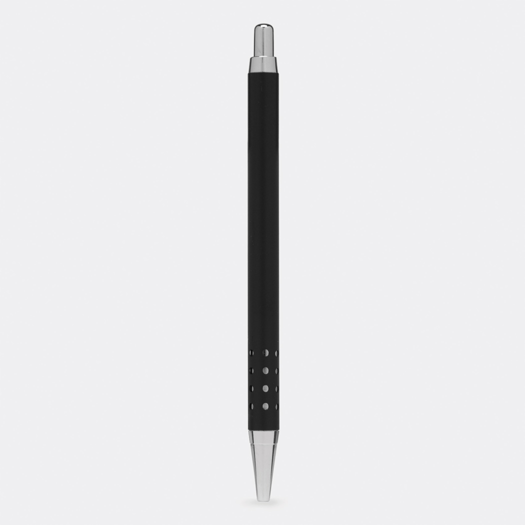 Messing-Kugelschreiber BUDAPEST: Schaft mit Loch-Design, Druckmechanismus, Großraummine, blauschreibend