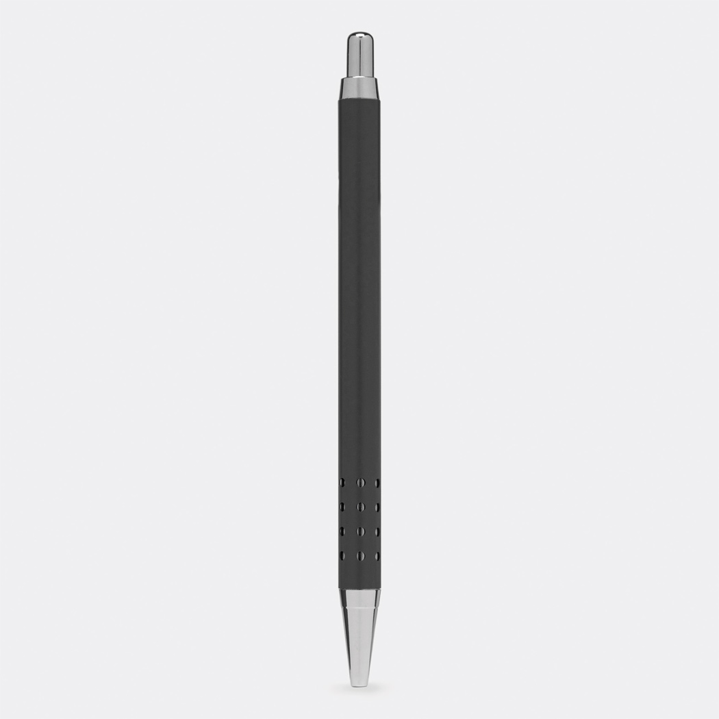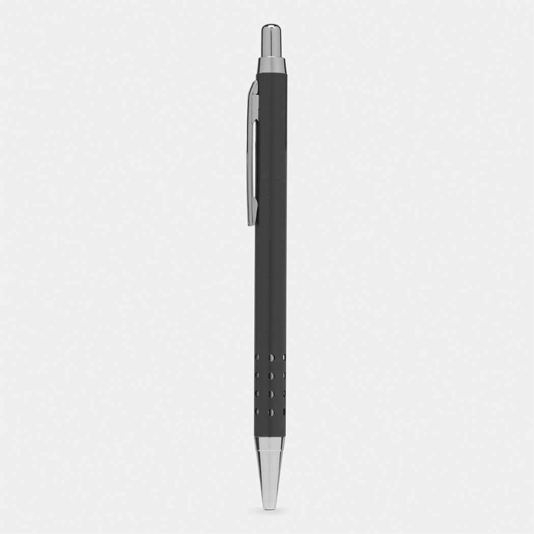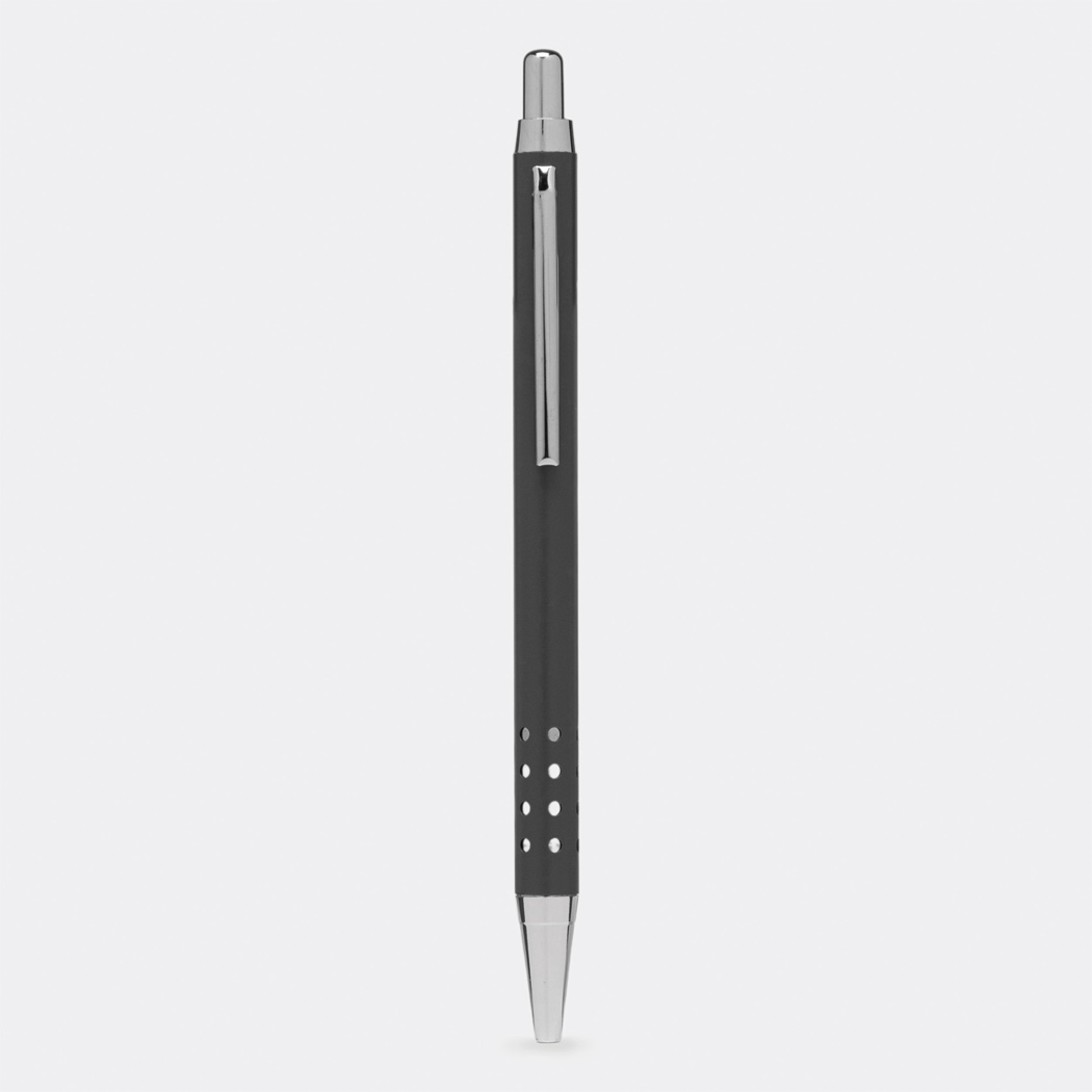 Messing-Kugelschreiber BUDAPEST: Schaft mit Loch-Design, Druckmechanismus, Großraummine, blauschreibend
