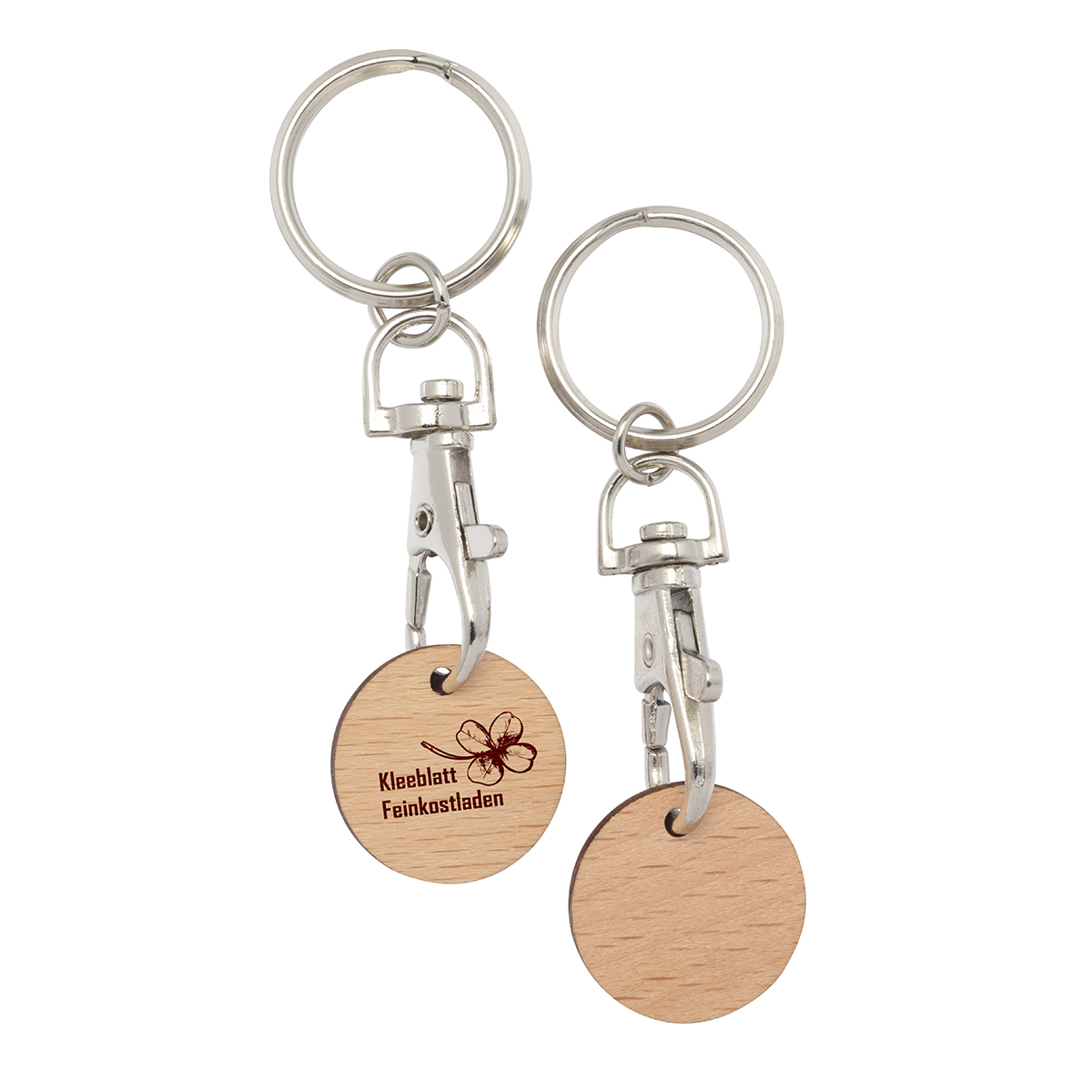 Metall-Karabinerhaken "Kappa" mit Holz-1€-Chip