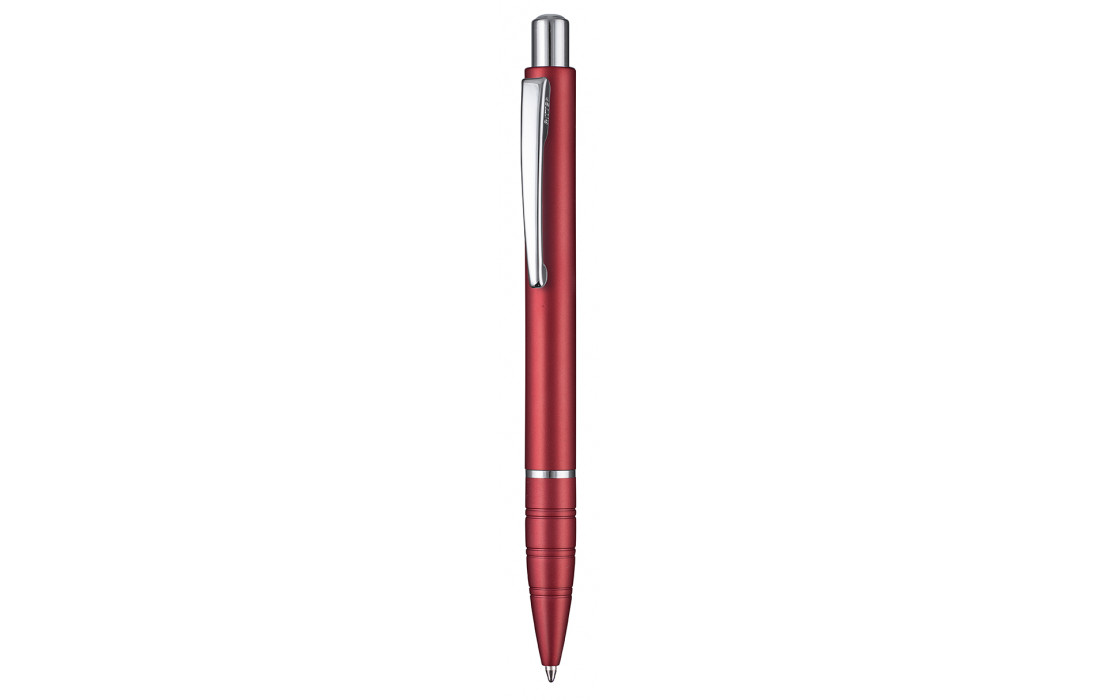 Metall-Kugelschreiber Astra aus Aluminium mit Druckmechanik. Drücker, Clip und Ring sind vernickelt und heben sich dezent vom Rest des Kugelschreibers ab. Ausgestattet ist dieses Schreibgerät mit einer blau schreibenden Metallgroßraummine.