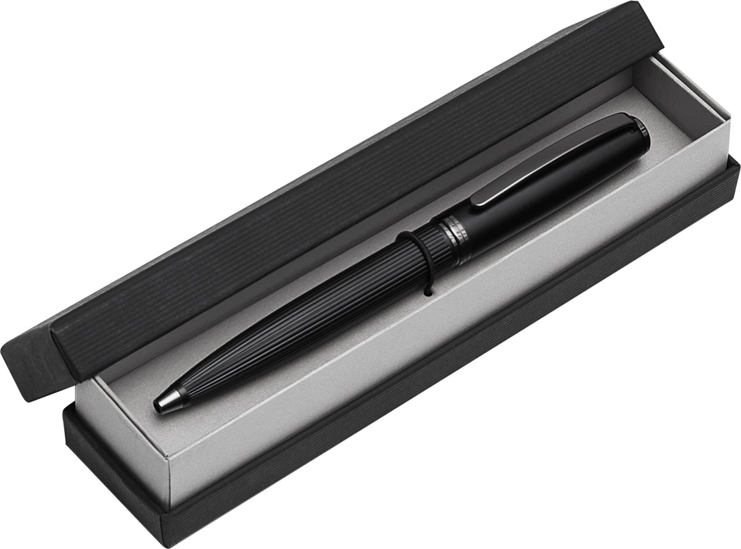 Metall-Kugelschreiber BLACK PEARL: mit Drehmechanismus, matte Oberfläche, glänzender Clip, blauschreibend, in Geschenkbox