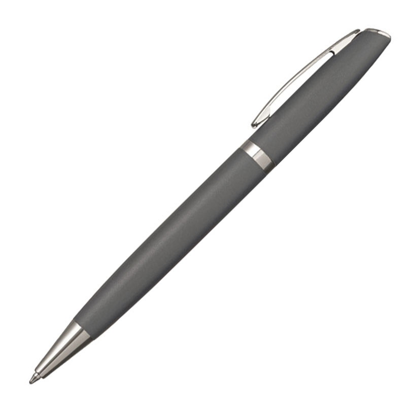 Eleganter Metall Kugelschreiber mit blauschreibender Großraummine. Ihre Werbung lasern wir rechts vom Clip.