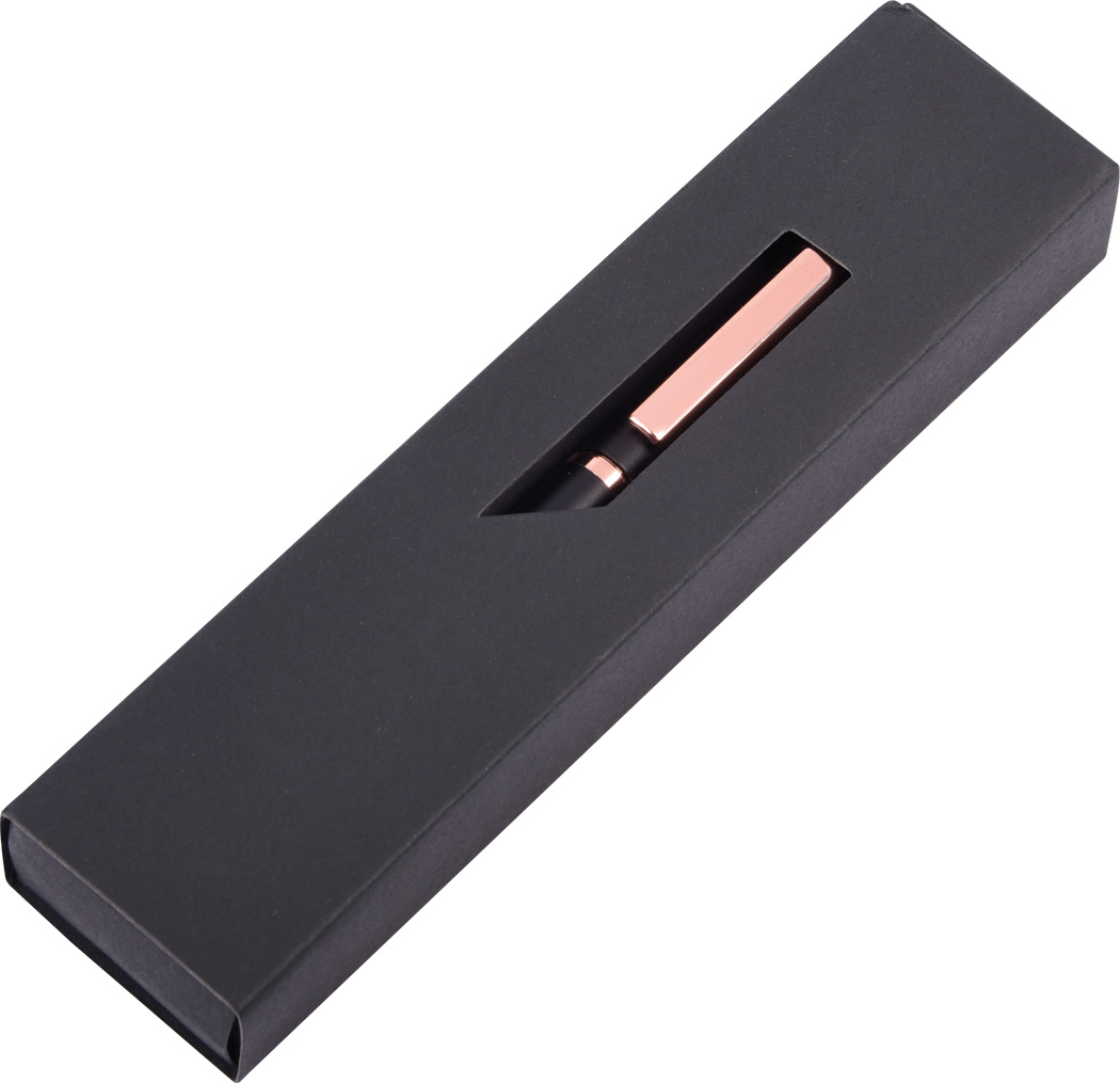 Metall-Tintenroller COPPER ROLLER: matt-schwarze Oberfläche, Verschlusskappe mit Clip in Kupferfarbe, blauschreibend, Lieferung im Papp-Etui