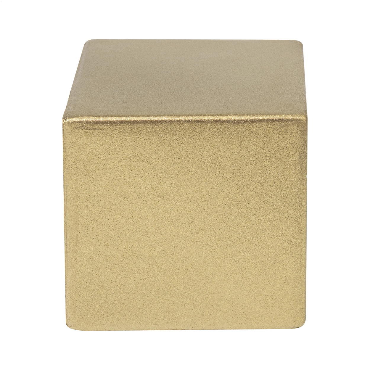 Antistressball in Würfelform aus PU-Schaum mit Metallic-Oberfläche.