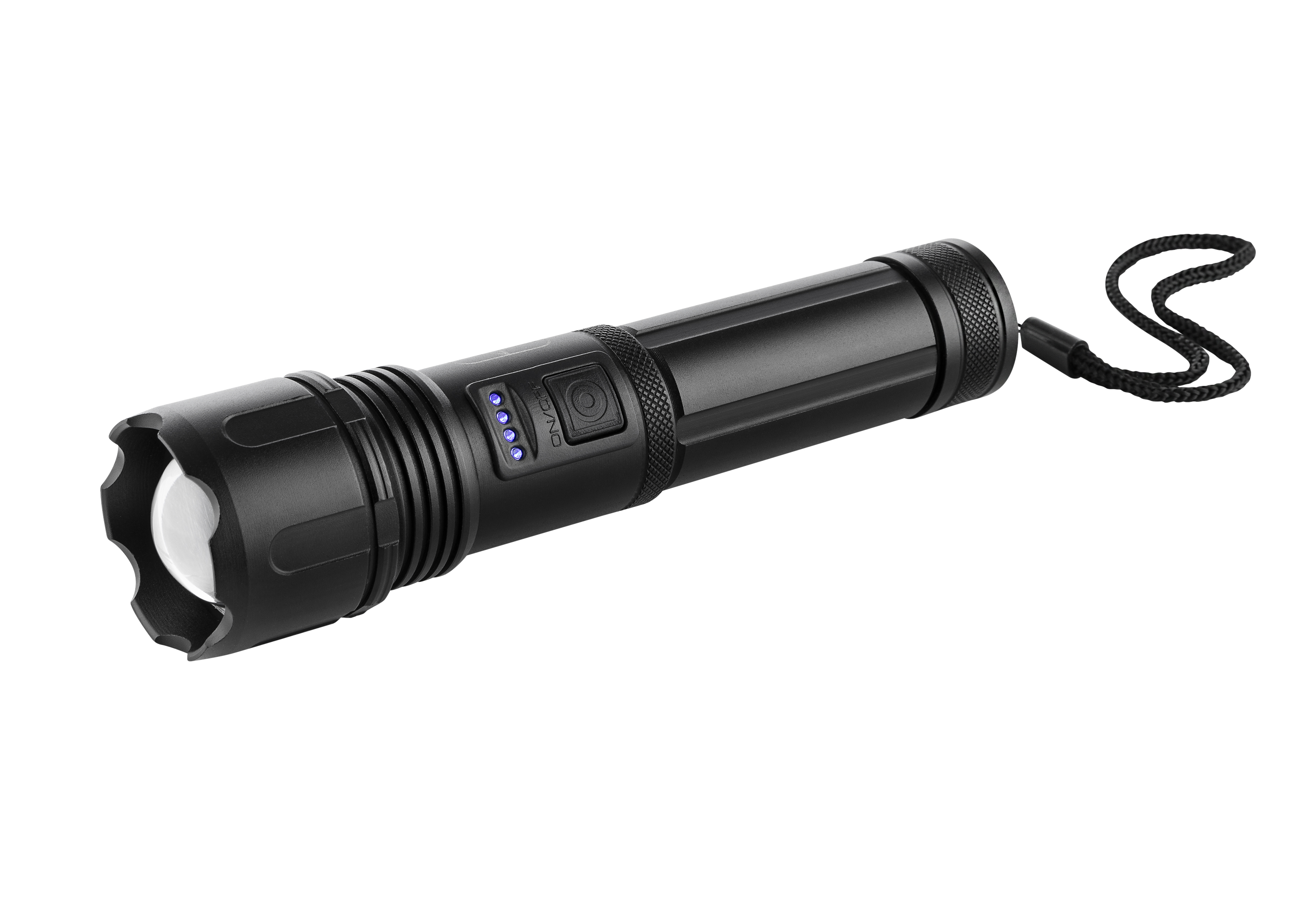 BlackLine PRO POWER LED Lampe mit mega starken 650 Lumen, eco-friendly da wiederaufladbar (1200 mAh Akku), fokussierbar mit Powerschalter (100%/70%/50%/Blinken / SOS), robustes Profi Aluminiumgehäuse, Micro-USB Buchse, Wechselsystem für konventionelle AAA-Batterien (exkl.). 1200 mAh Akku oder 3xAAA Batterie optional, 650 Lumen/15Watt, 5 Leuchtmodi (100%, 70%, 50%, Strobo- und SOS Blinken), Taster Schaltung (langes Drücken zum Ausschalten) fokusierbar, Ladestandanzeige, Handschlaufe, VPE 20. Ladekabel, Designbox