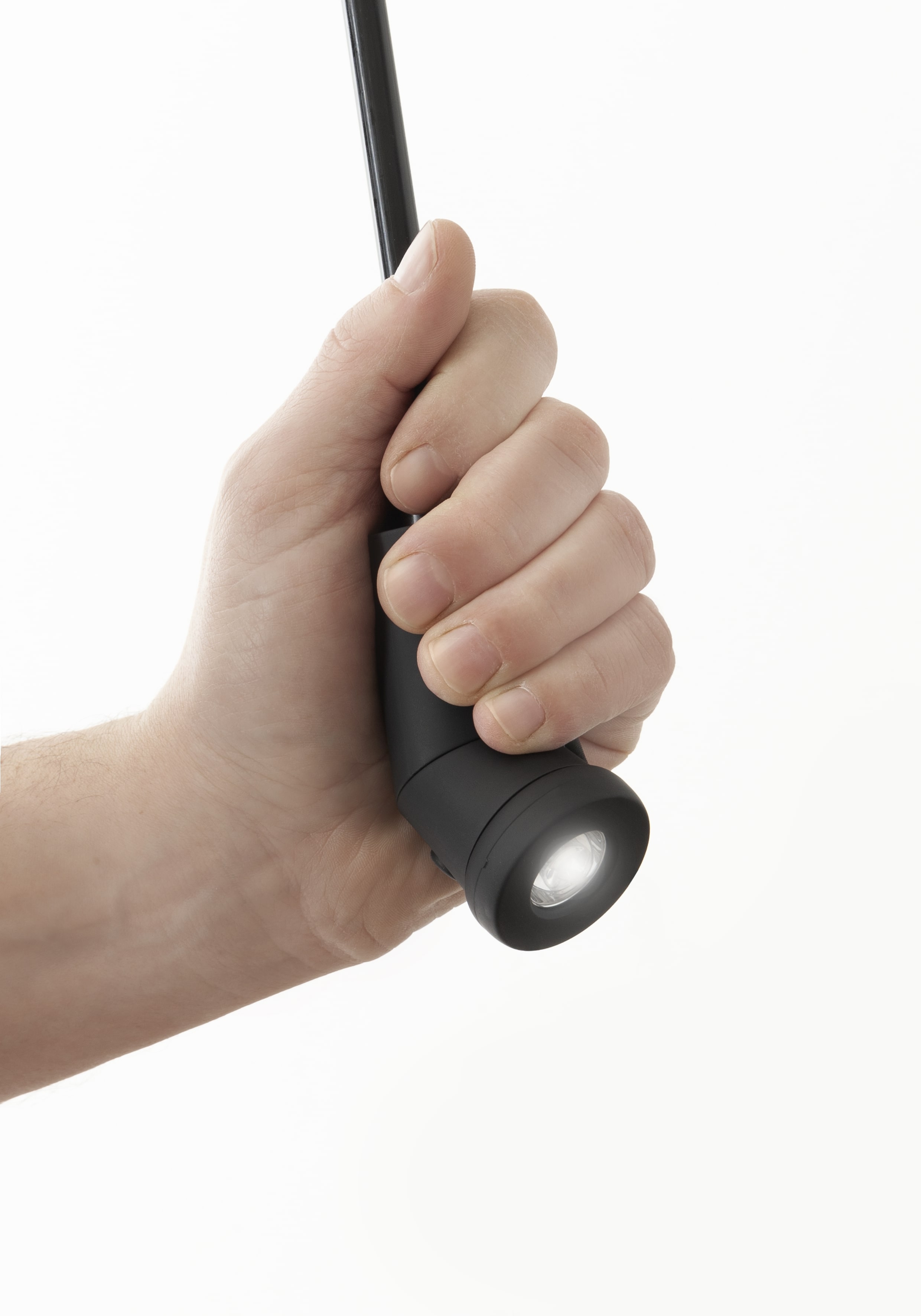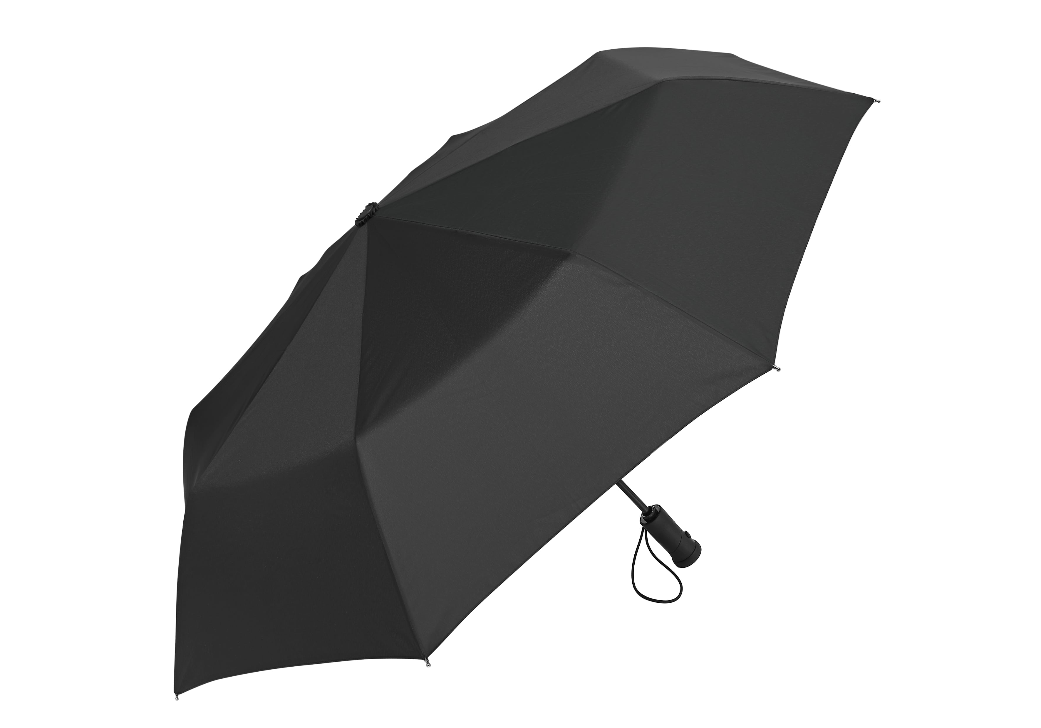 Kompakter Luxus Regenschirm aus ökologisch wertvollem recycelten PET-Material, mit integriertem Wegelicht, Wind Proof und allen Eigenschaften der Refernzklasse zum Economypreis. Luxus RPET Material, Teflonbeschichtet, Wind Proof, Auto Open / Auto Close, LED, VPE 50. LED im Griff, Schutzhülle, Knopfzellen (wechselbar), Polybeutel, Design- Infokarte