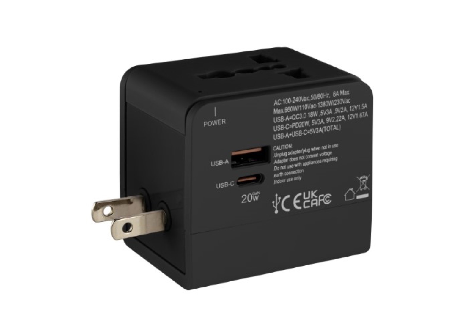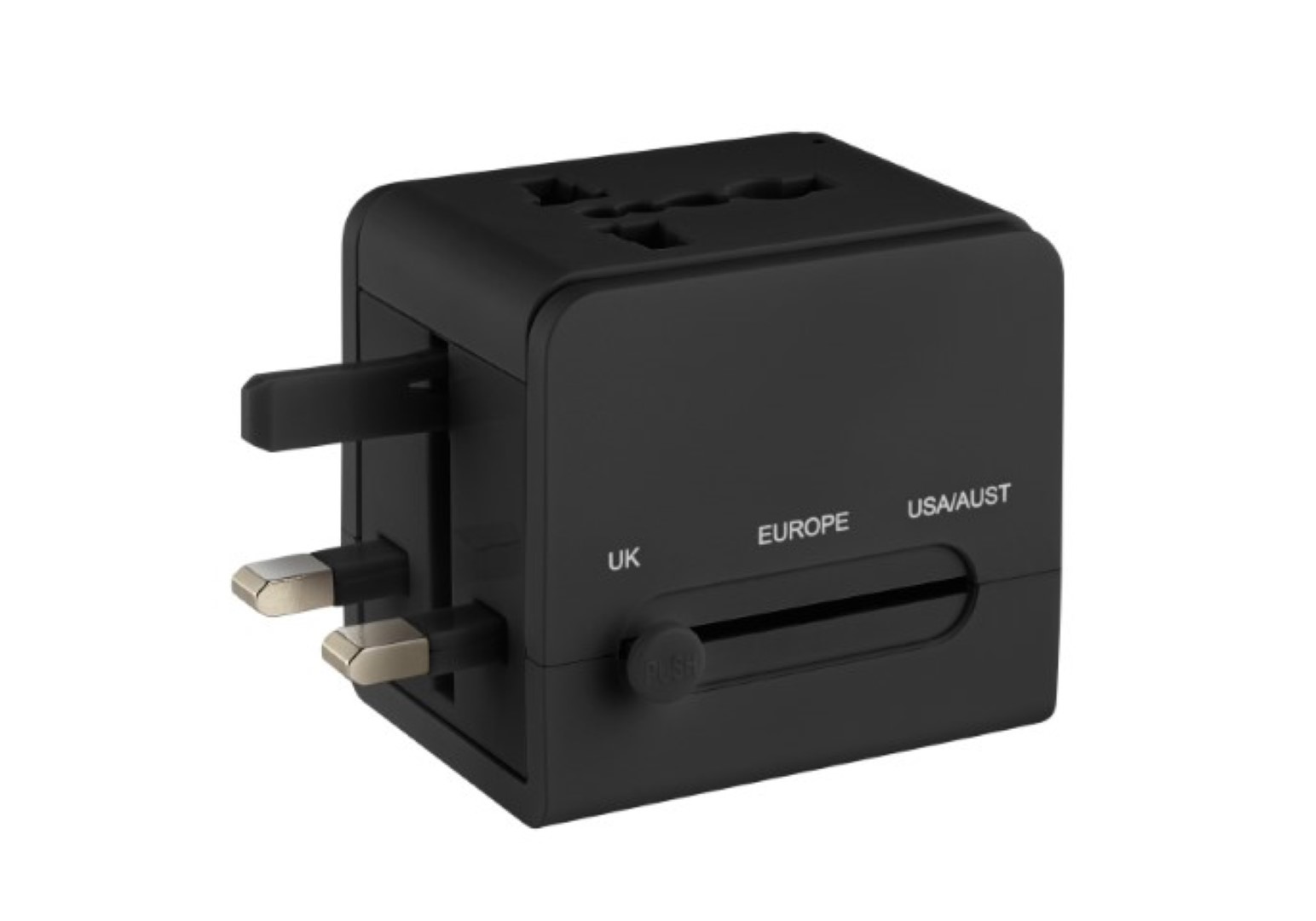 Der Metmaxx® Reiseadapter "BusinessTravelBuddy" ist der ideale Begleiter für all Ihre internationalen Abenteuer. Ob Geschäftsreise oder Urlaub, mit diesem vielseitigen Adapter bleiben Sie in über 120 Ländern stets verbunden. Mit USB-A, USB-C Anschlüssen und 20 Watt Leistung dank PD (Power Delivery) Fast Charging Technologie lädt er Deine Geräte schnell und effizient. Zusätzlich zu den USB-Anschlüssen bietet der Adapter einen 110V/230V Anschluss für Ihre Elektrogeräte (kein Transformator). Geliefert in einer robusten und praktischen Kunststoff Travel Box, die für zusätzliche Sicherheit und einfache Aufbewahrung sorgt. Die großzügige Werbefläche eignet sich ideal für Ihr Logo oder Ihre Botschaft, sodass Sie Ihren Reiseadapter individuell gestalten können. Bleib überall gutvernetzt und erlebe stressfreie Reisen mit stets vollem Akku! Inkl. Craft Paper Sleeve.