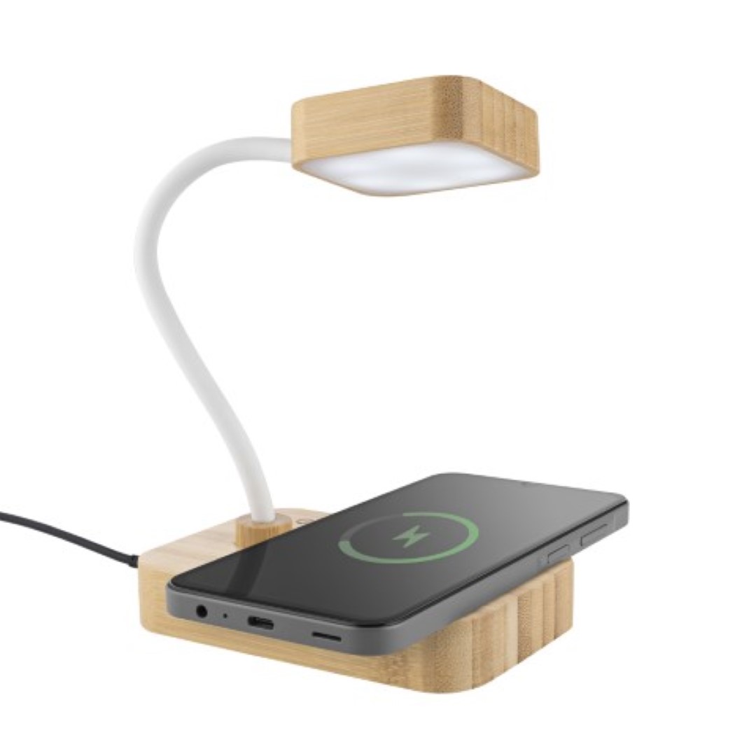 Natürliches Design, smarte Funktionen - Die 2LumiBamboo" ist die perfekte Kombination aus natürlichem Design und moderner Technik. Diese kompakte Tischlampe aus nachhaltigem Bambus eignet sich ideal für Nachttisch oder Bürotisch und bietet ein integriertes Wireless Charging Pad mit 15 Watt Ladepower für Ihr Handy (zum Wecken, Music hören etc.) oder Ihre IPods. Mit stufenlos dimmbarem Licht, das zwischen warmen und kühlen Tönen wechselt, schafft die "LumiBamboo" stets die passende Atmosphäre. In recycelten Craft Paper Box, incl. USB-C Kabel.
