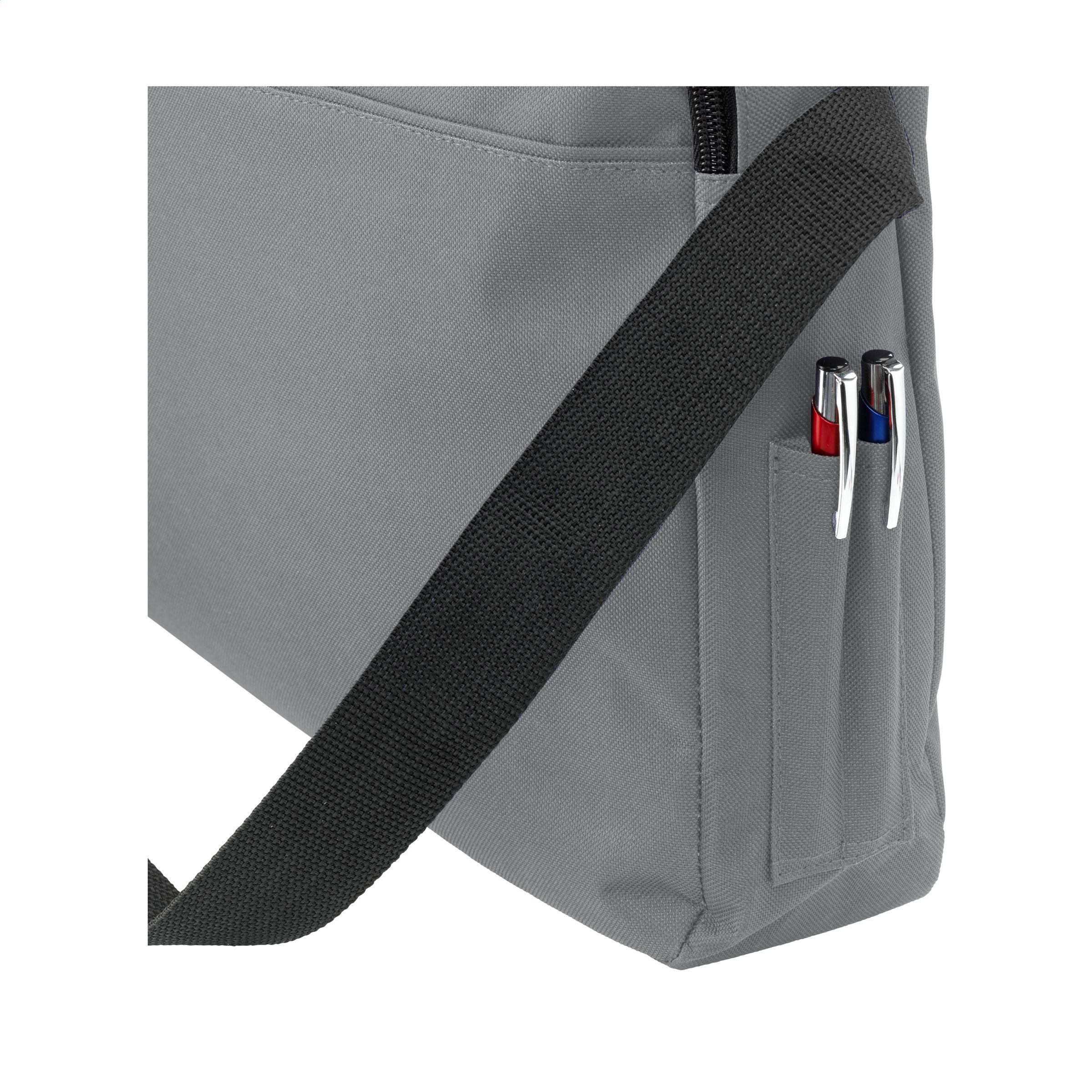 Schulter-/Dokumententasche aus 600D Polyester mit einem großen Hauptfach, 2 Fächern für Stifte und verstellbarem Schultergurt.