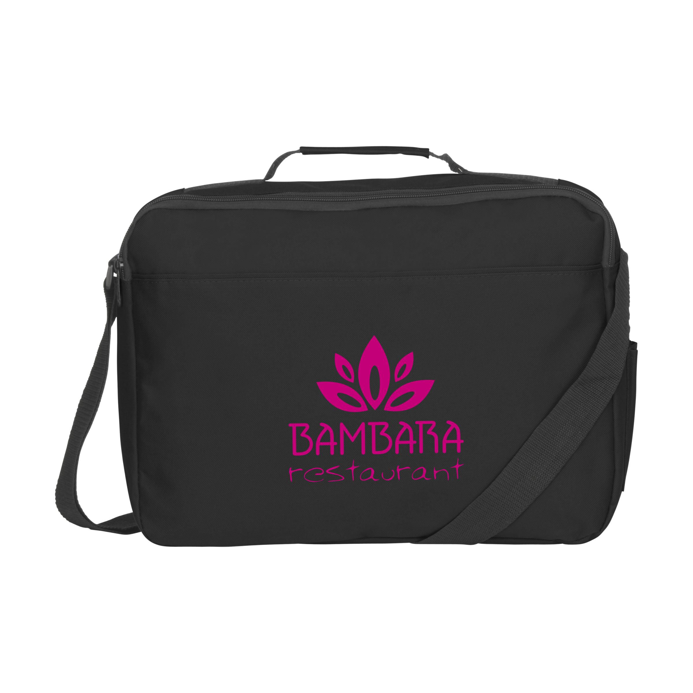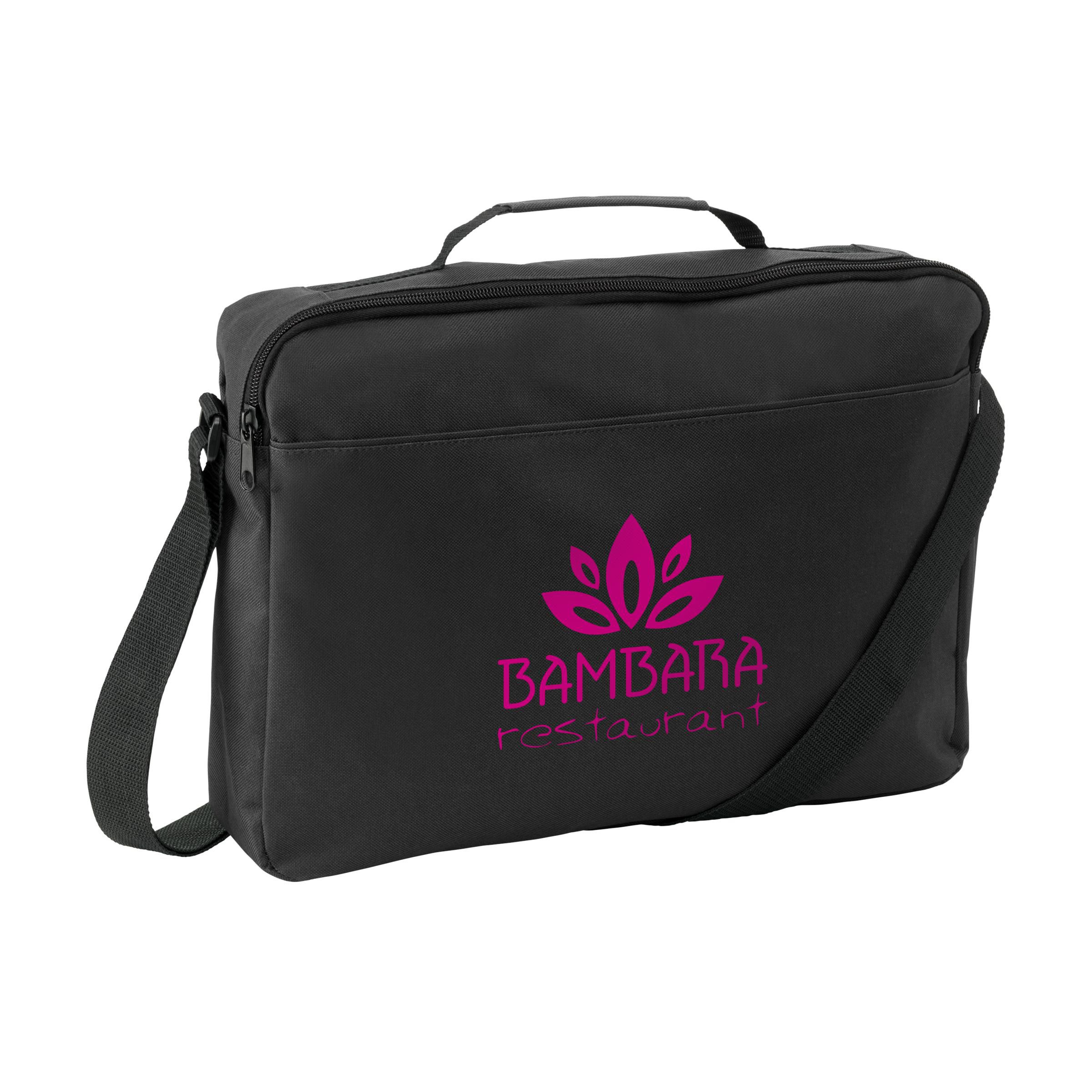 Schulter- / Dokumententasche aus 600D Polyester mit einem großen Hauptfach, 2 Fächern für Stifte und verstellbarem Schultergurt.