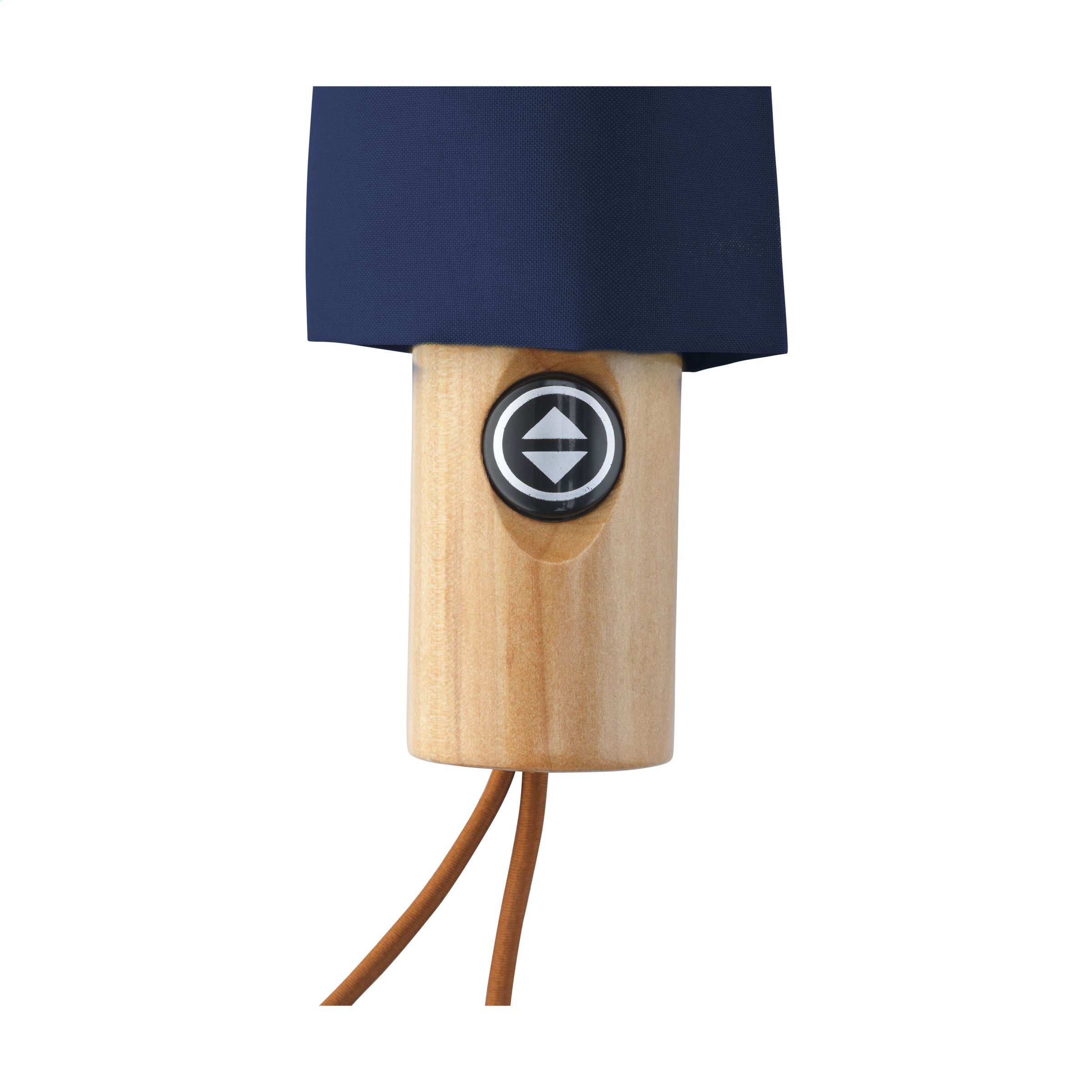 WoW! Faltbarer Regenschirm mit automatischem Öffnungs- und Schließmechanismus. Mit einem RPET 190T Pongee-Polyester-Bezug. Dieser Regenschirm ist mit einem Schaft und einem Gestell aus Edelstahl, einem Holzgriff, einer elastischen Handschlaufe und einem Klettverschluss ausgestattet. Lieferung in einer Aufbewarungshülle. Länge zusammengefaltet: 28 cm. Maße zusammengeklappt: Ø 6 x 28,5 cm. RCS-zertifiziert. Recyceltes Material insgesamt: 16%.