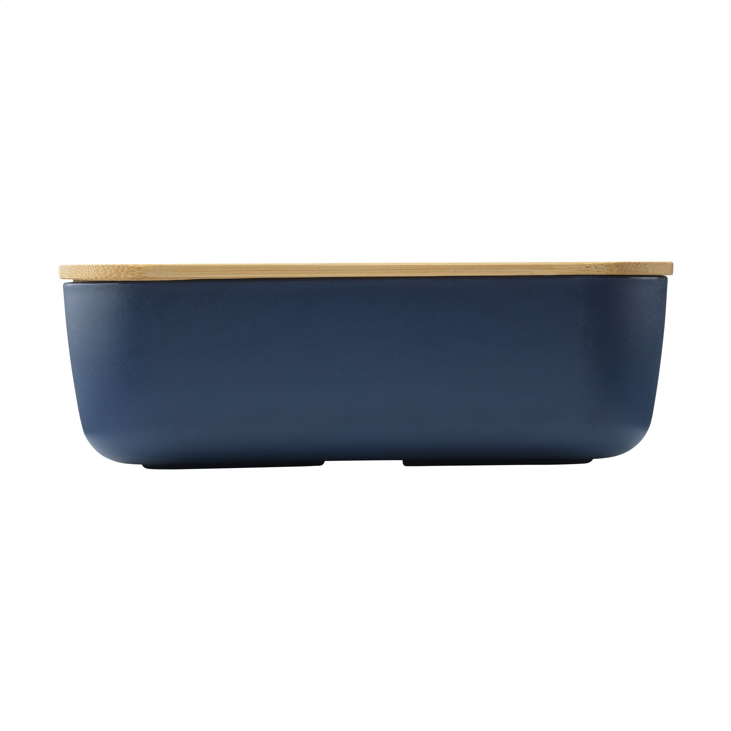 Große Lunchbox aus PP-Kunststoff. Der Deckel ist aus natürlichem Bambus gefertigt. Inklusive Gummiband zum Verschließen. Nicht spülmaschinengeeignet.