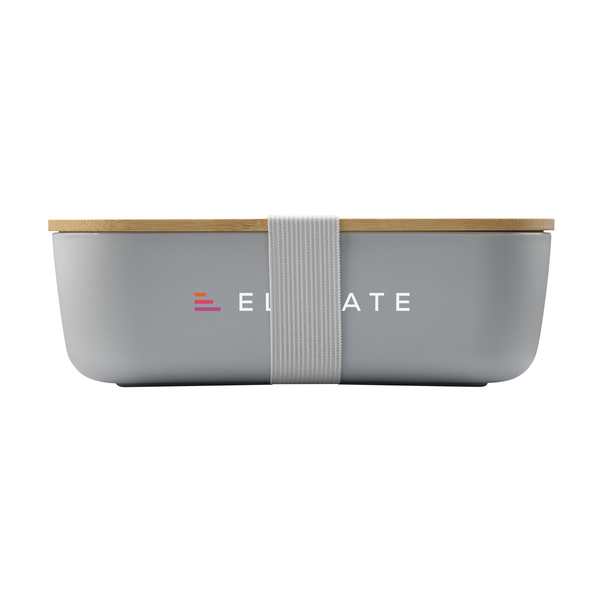 Große Lunchbox aus PP-Kunststoff. Der Deckel ist aus natürlichem Bambus gefertigt. Inklusive Gummiband zum Verschließen. Nicht spülmaschinengeeignet.
