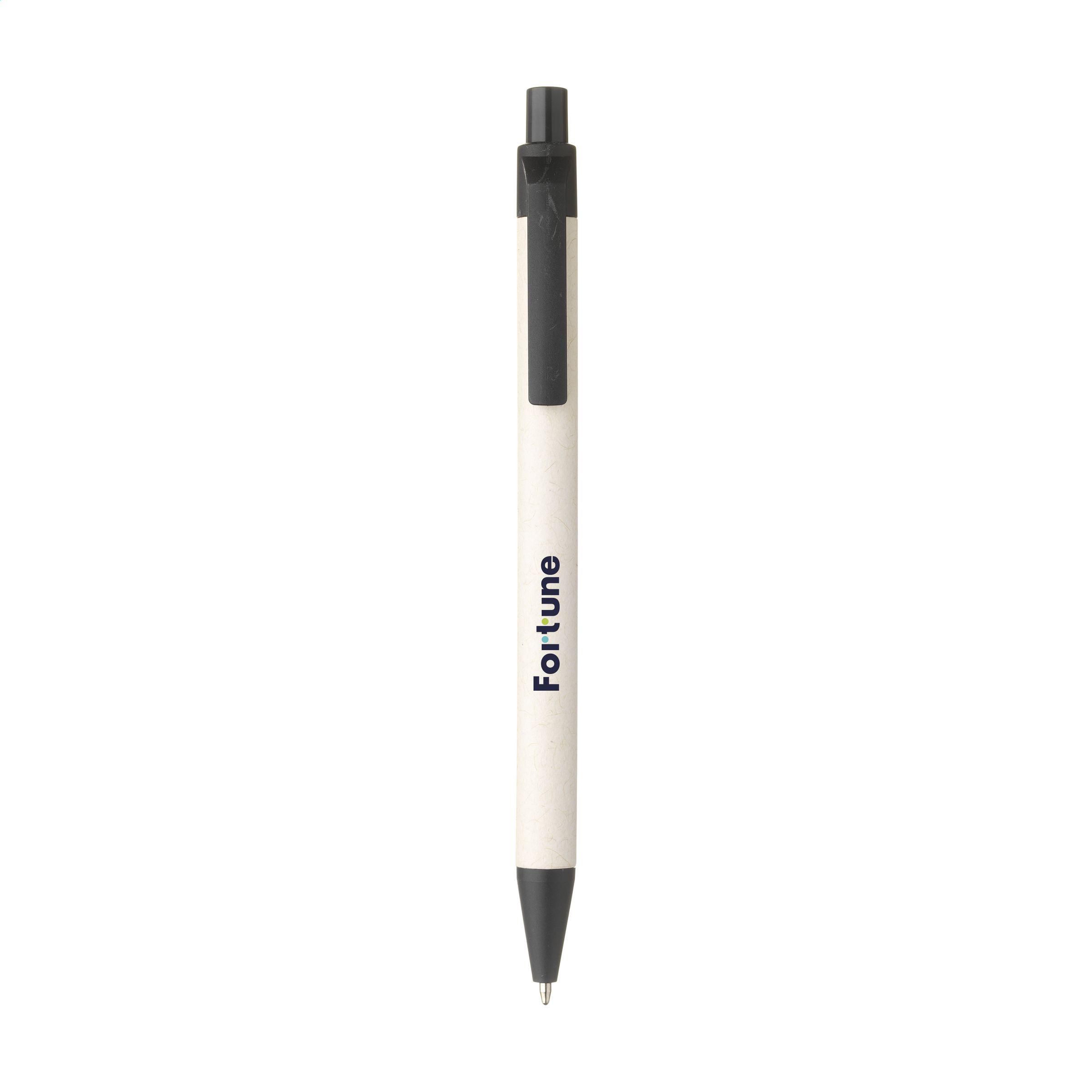 Beschreibung: Blauschreibender Kugelschreiber. Der Halter dieses Stifts ist aus recycelten Milchkartons hergestellt. Clip, Druckknopf und Spitze sind aus PLA gefertigt. Das biologisch abbaubare Material PLA wird aus Maisstärke hergestellt, die von Pflanzen produziert wird – natürlich und erneuerbar. Aufgrund der Verwendung von recycelten Materialien können kleine Imperfektionen im Material sichtbar sein. Dies verleiht dem Produkt ein einzigartiges Aussehen.