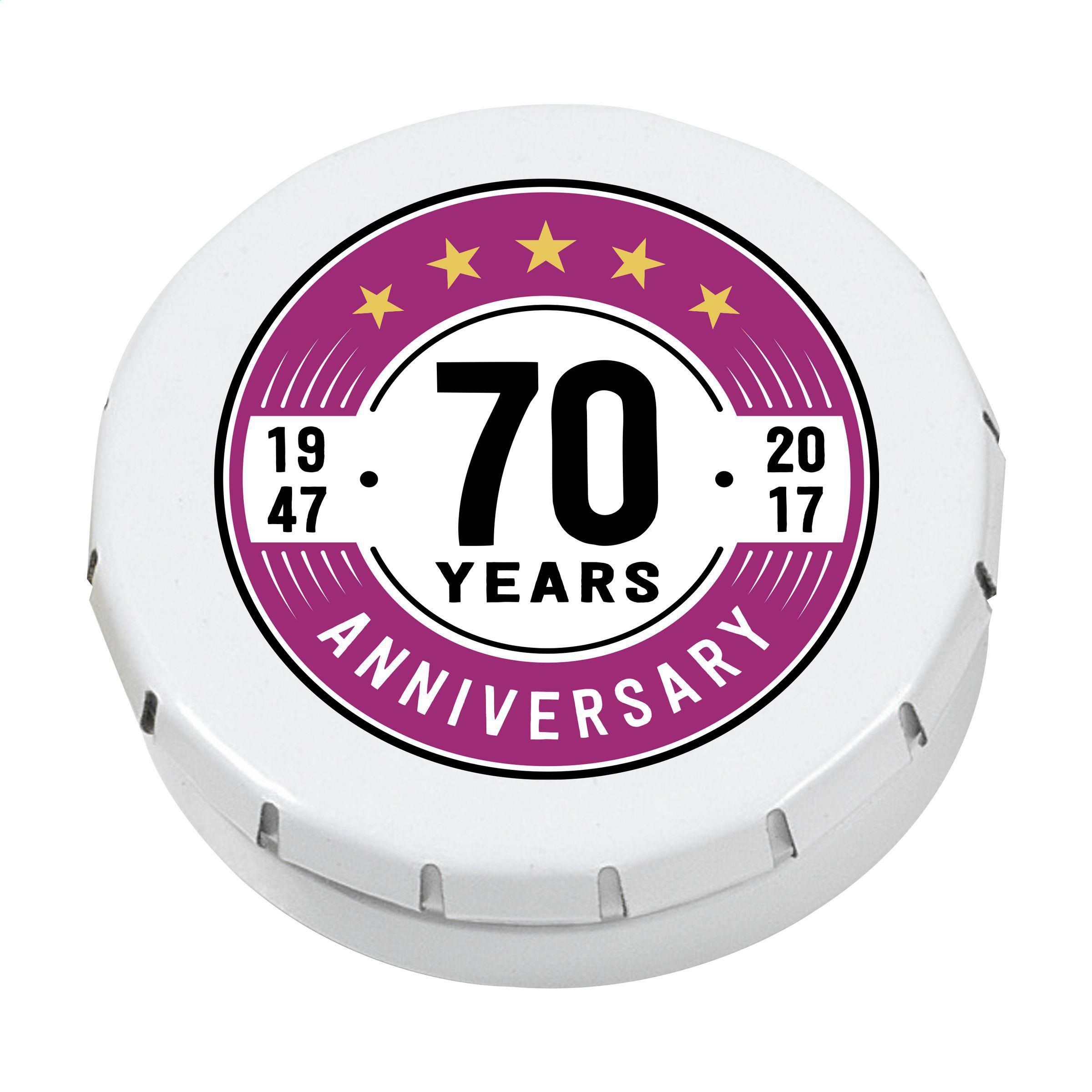 Süßigkeitendöschen mit handlichem Druck-/Klicksystem. Gefüllt mit ca. 12 g. Pastillen.