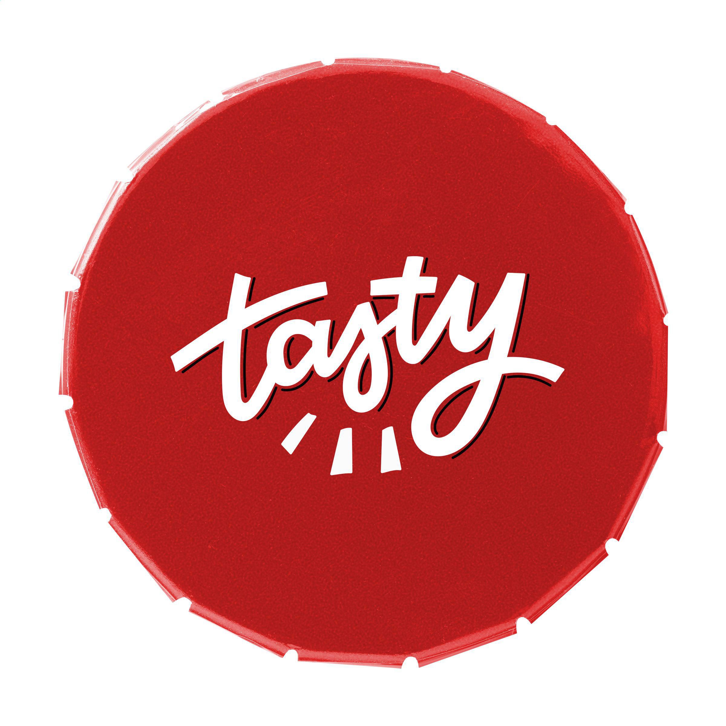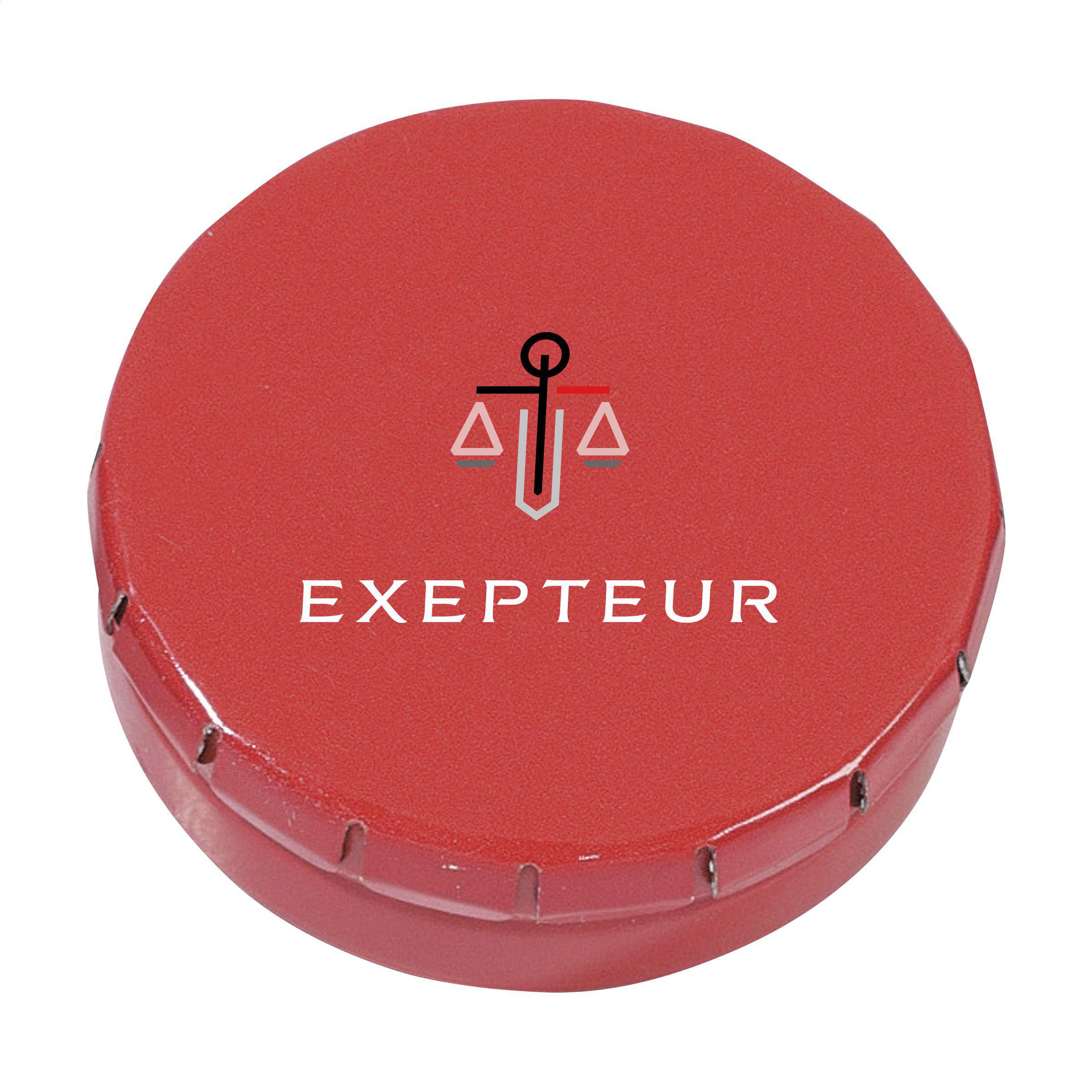 Süßigkeitendöschen mit handlichem Druck-/Klicksystem. Gefüllt mit ca. 12 g. Pastillen.