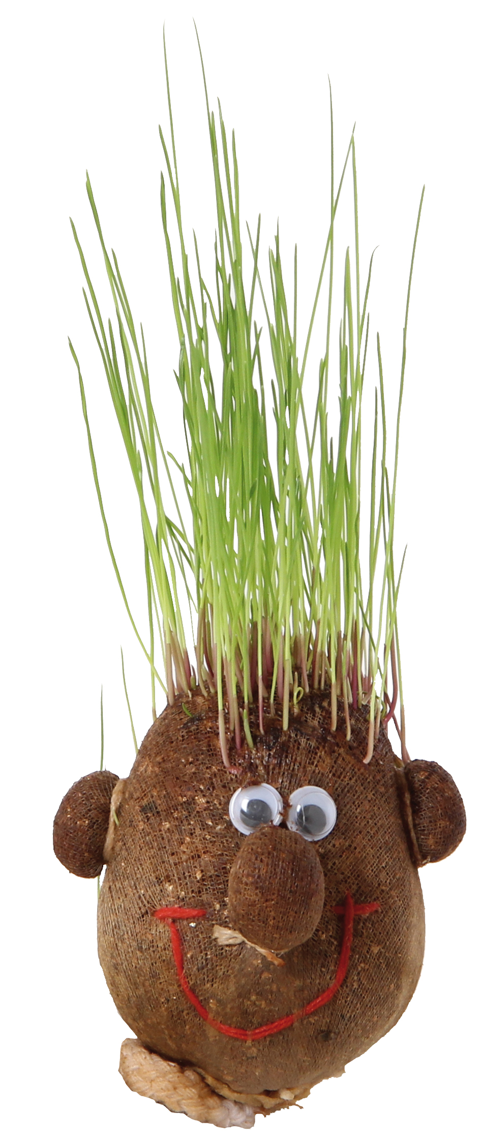 Pfiffige Geschenkidee für Pflanzenfreunde! Mit etwas Wasser und Geduld wachsen dem lustigen Kopf grüne Haare, die man nach Lust und Laune schneiden und stylen kann!