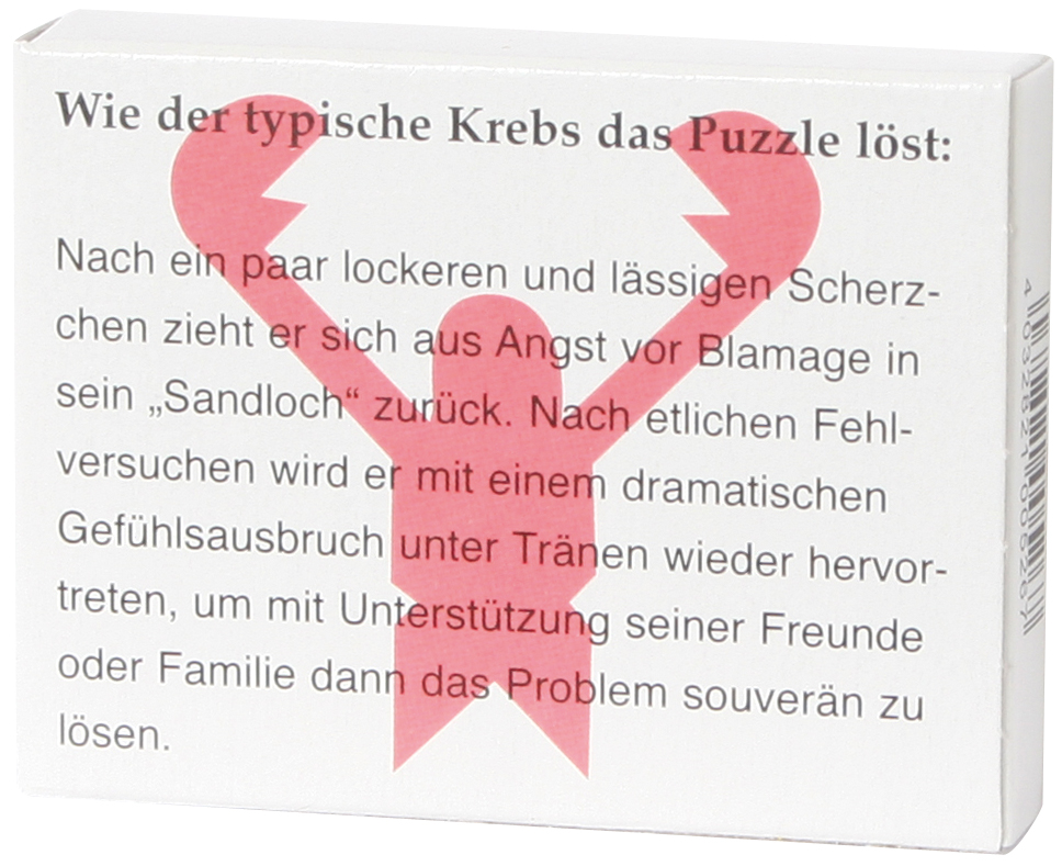 Verzwicktes Holz-Legepuzzle für Ihr Sternzeichen - auf der Schachtelrückseite ist lustig beschrieben, wie jeder Sternzeichen-Typ seine Aufgabe lösen wird! Acht Teile!