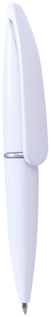 Mini Dreh-Kugelschreiber in auffälligen Farben. Mit originellem übergroßem Clip und Mittelring in Silber. Blaue Tinte.