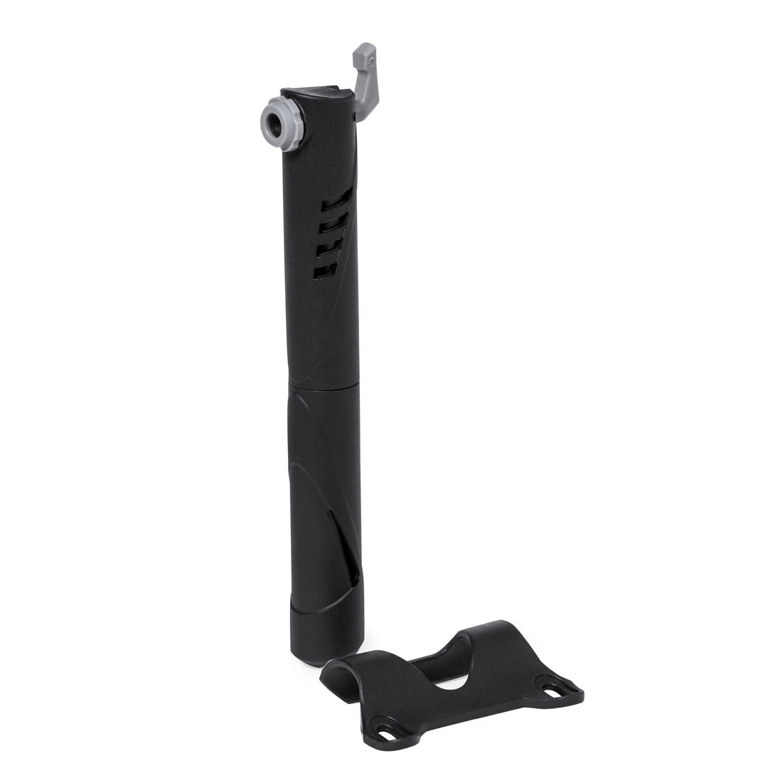 Praktische Fahrradpumpe aus widerstandsfähigem Aluminium. Manuell bedient und kompakt; mit passendem Zubehör passend für alle Fahrradtypen.
