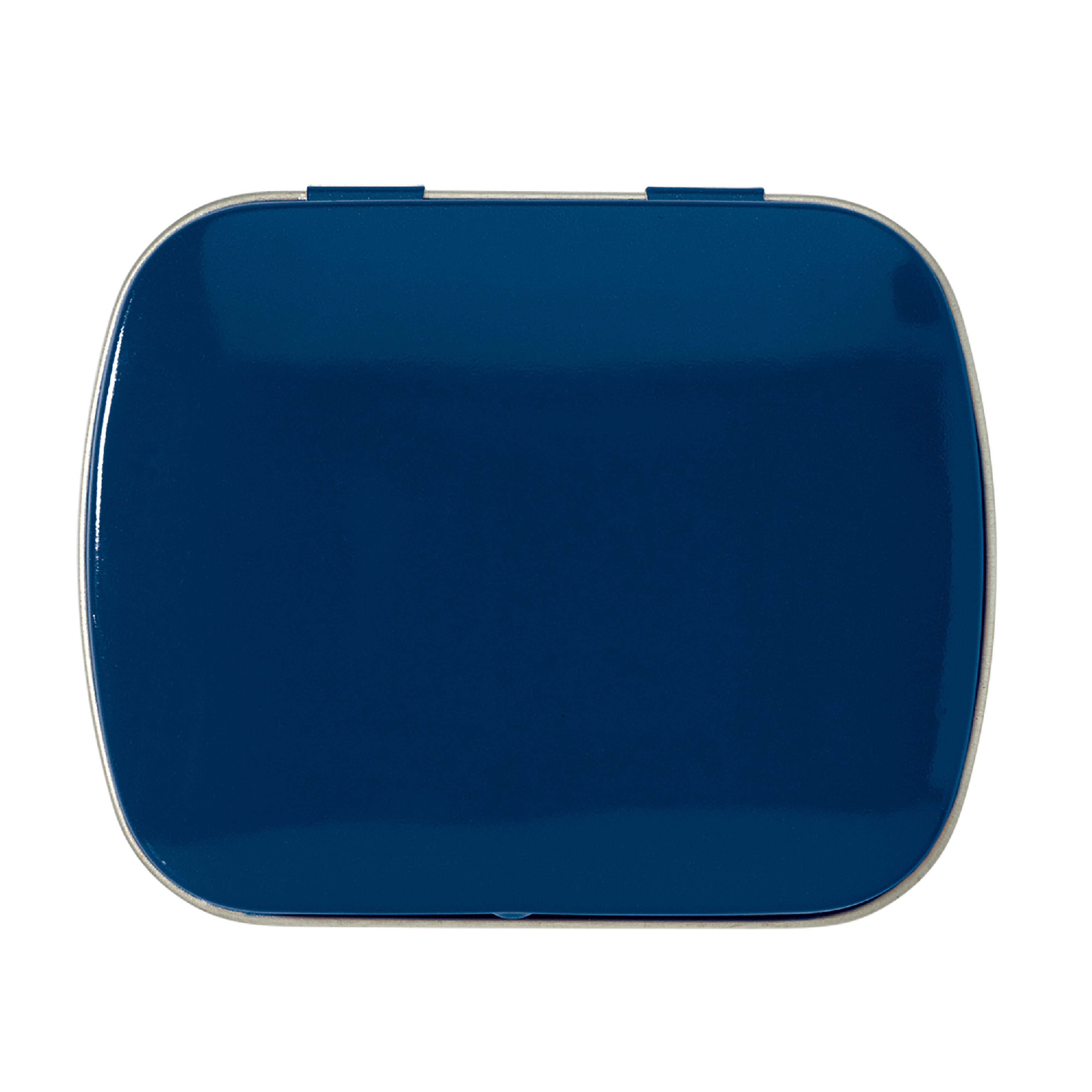 Quadratische Pfefferminzdose, gefüllt mit 23g holländischer Pfefferminzbonbons. Nicht zuckerfrei.