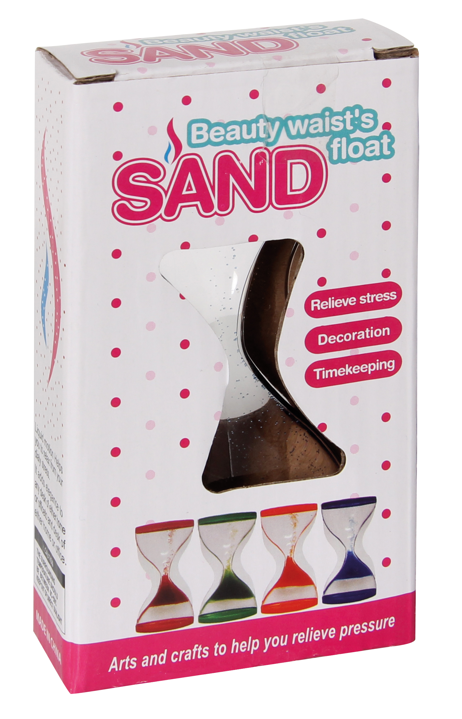 Statt Sand, der nach unten läuft, steigen in dem Timer kleine Tröpfchen einer bunten Flüssigkeit nach oben. Wie bei einer echten Sanduhr kann man den Timer umdrehen und das Spiel beginnt von vorne... Laufzeit bei Zimmertemperatur ca. 1 Minute.