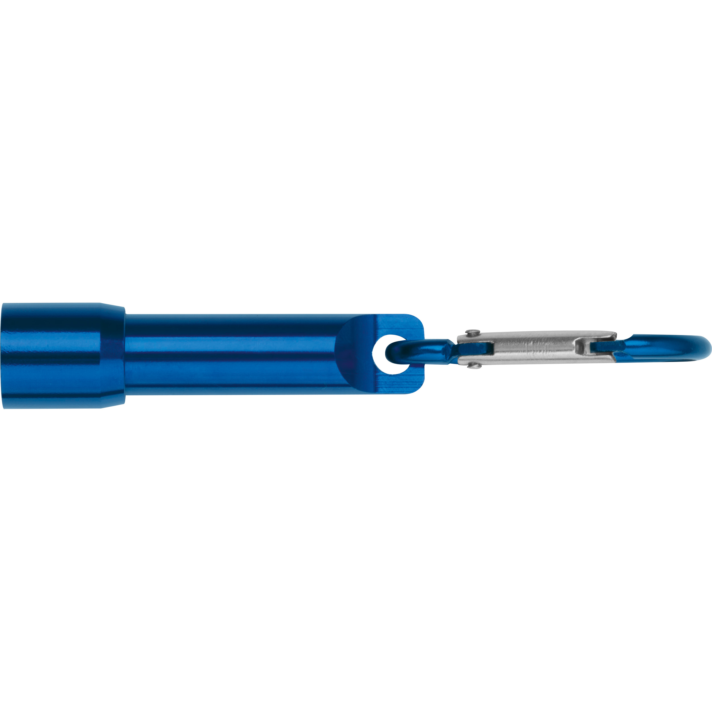 Mini-Taschenlampe mit Karabinerhaken aus recyceltem Aluminium. 4 Knopfzellen sind im Lieferumfang bereits enthalten. Ihre Werbung bringen wir mittels einer Lasergravur auf der Taschenlampe an.