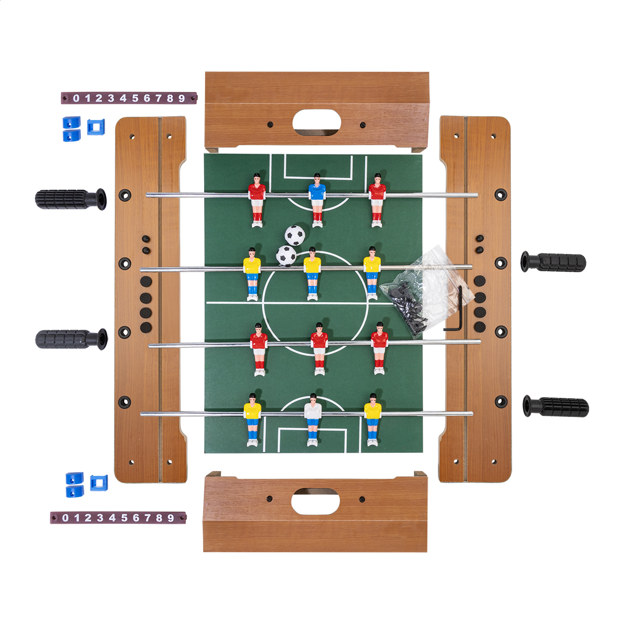 Mini-Tischfußballspiel aus MDF-Holz. Enthält 2 Bälle und einen Punktezähler. Die Lieferung erfolgt flach verpackt.