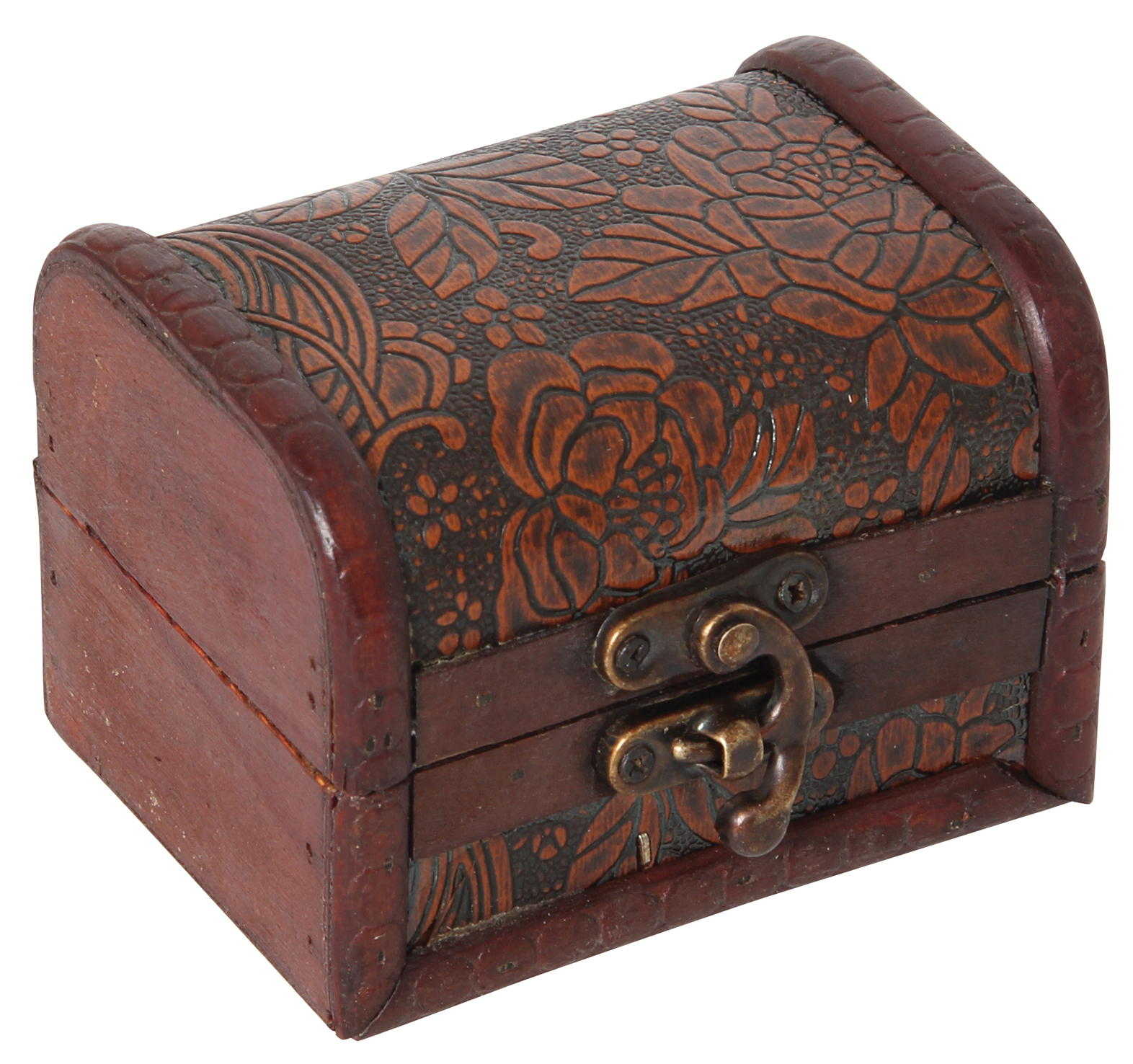 Dekoratives Holzkistchen mit Kunstlederbespannung. Drei Designs sortiert. 10 x 8 x 7,5 cm.