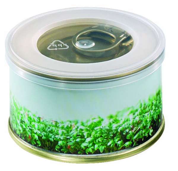 Metalldose (Aufreißdeckel) mit Wachstumsgranulat und eingelegtem Samen Kresse - ohne Magnet
