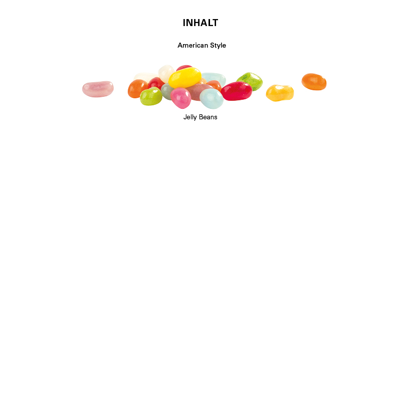 American Style Jelly Beans in Tüte aus weißer Folie mit ca. 50% Papieranteil, individuell bedruckt. Inhalt: American Style Jelly Beans, bunt gemischt, 10 g