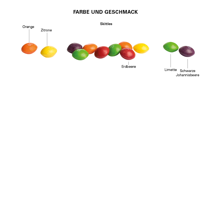 Skittles Fruits in Tüte aus weißer Folie mit ca. 50% Papieranteil, individuell bedruckt. Inhalt: Skittles Kaubonbons, 10 g