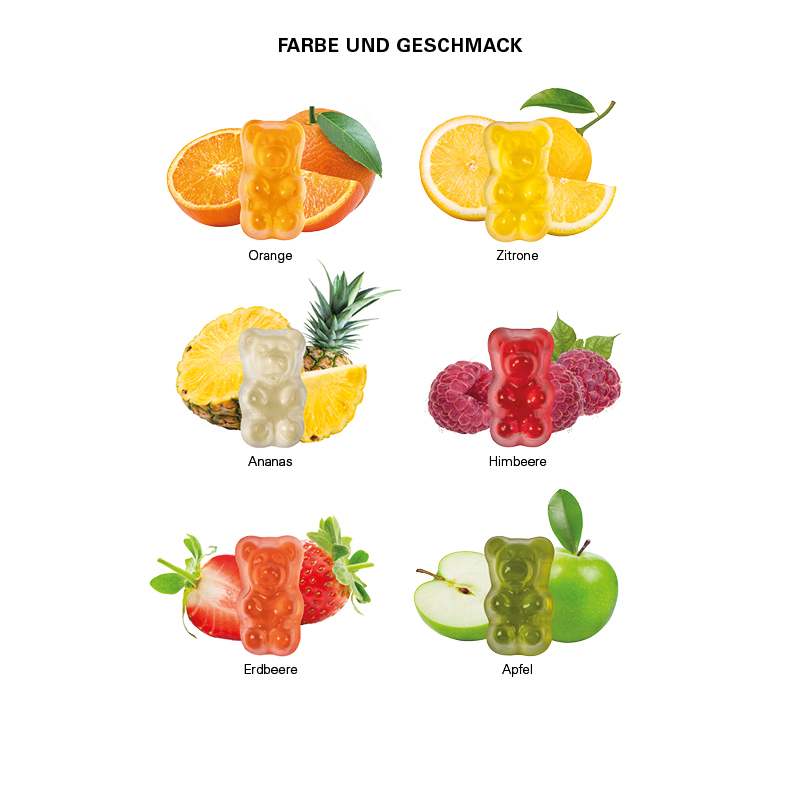 Orange, Zitrone, Ananas, Himbeere, Erdbeere, Apfel - bunt gemischt