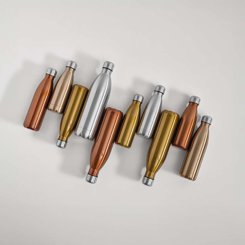 Mississippi 800P Trinkflasche, mit einem Fassungsvermögen von 810 ml (Netto: 770 ml), hergestellt aus recyceltem Edelstahl mit einer edlen, glänzenden Metallic-Oberfläche. Die doppelwandige Isolierung hält Ihre Getränke bis zu 14 Stunden heiß und bis zu 48 Stunden kalt. Sie ist auslaufsicher und spülmaschinenfest – ein stilvolles Accessoire, das Ihnen hilft, gut hydriert zu bleiben. Erhältlich in 4 metallischen Farben – Gold, Roségold, Silber und Bronze – jeweils in 4 verschiedenen Größen. Geliefert in einer umweltfreundlichen, individuellen Kraftkartonbox.