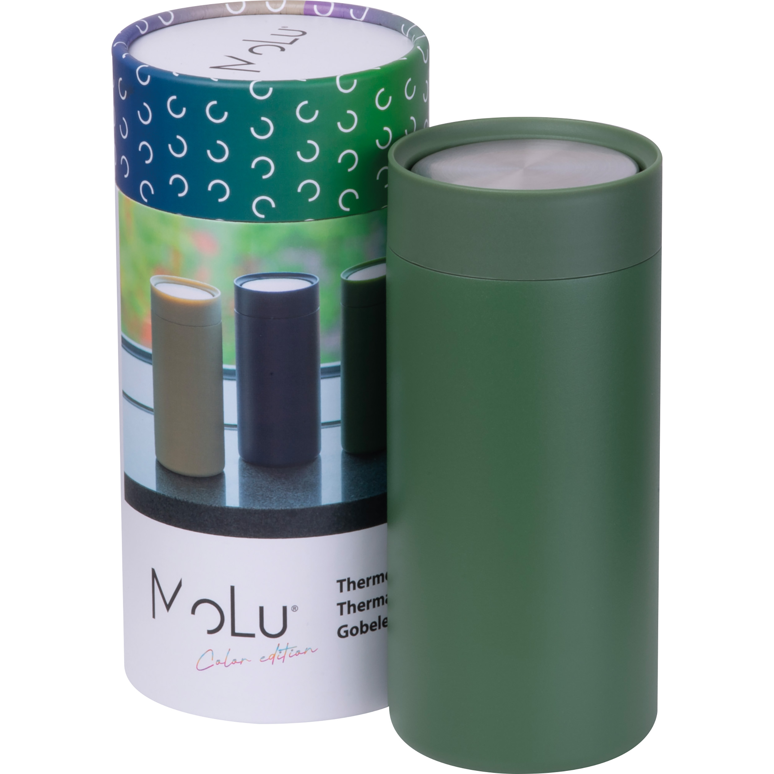 MoLu Color Edition – 360 mlStylischer Becher aus recyceltem Edelstahl, doppelwandig vakuumisoliert. Hält Getränke lange heiß oder kalt – ideal für unterwegs. Mit besonderem Farbdesign in mehreren Varianten – modern, frisch, charakterstark. Nachhaltig, kompakt und absolut alltagstauglich – der perfekte Begleiter im MoLu Look. Ihr Logo wird auf dem Body platziert.
