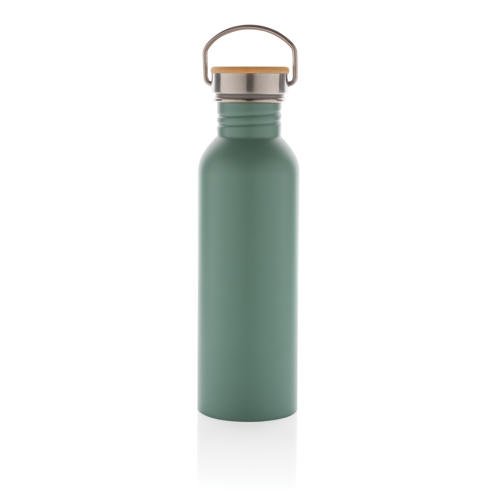 Informationen zu "Moderne Stainless-Steel Flasche mit Bambusdeckel"
