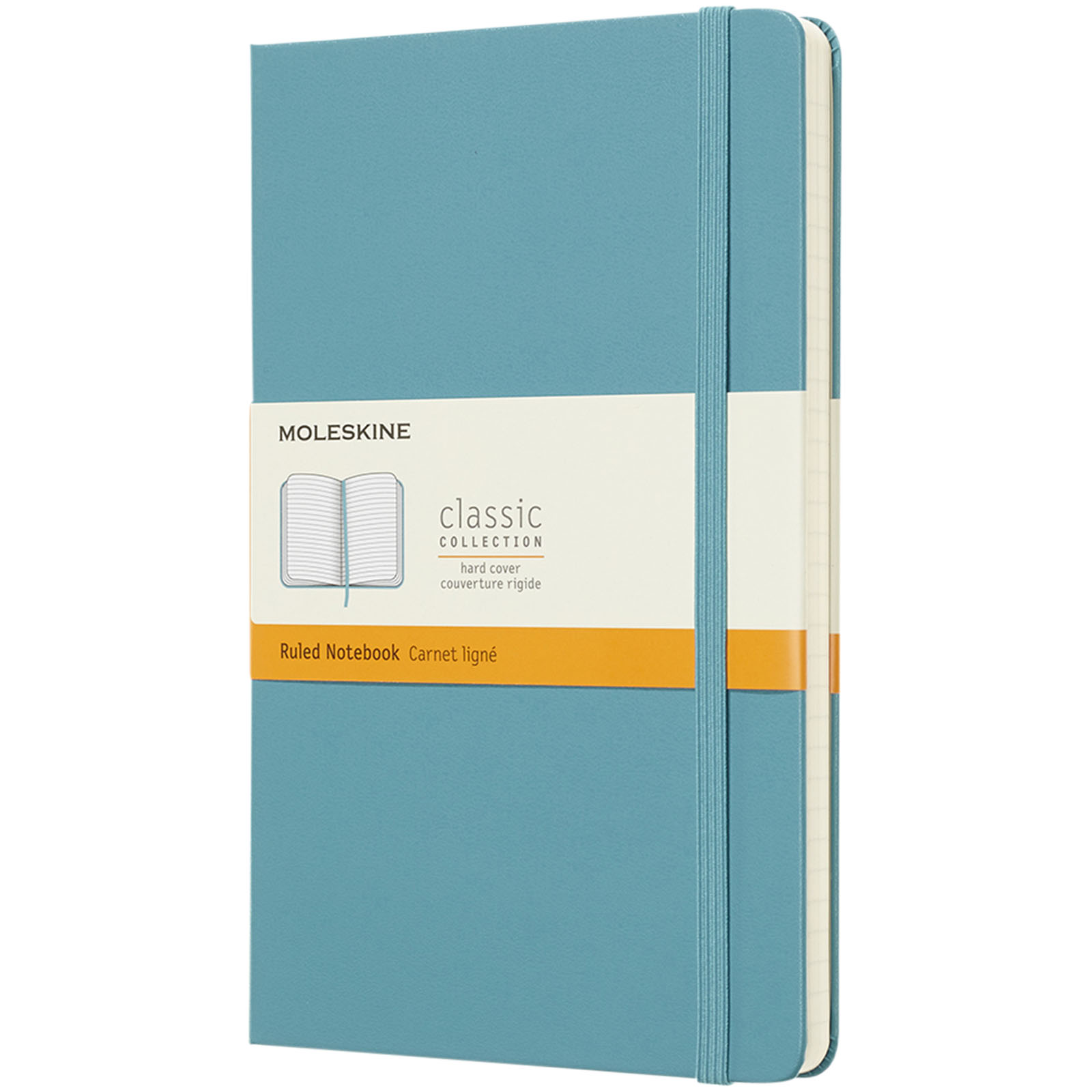 Das Moleskine Classic Hardcover Notizbuch im großen Format (13 x 21 cm) verfügt über einen kartongebundenen Einband mit abgerundeten Ecken, säurefreiem Papier, einem Lesezeichenband und elastischem Verschluss. Auf der ersten Seite finden Sie Platz für einen Hinweis "bei Verlust" und zur Belohnung für den Finder. Auf der Rückseite befindet sich eine erweiterbare Innentasche, auf der die Geschichte von Moleskine steht. Die Tasche kann für lose Zettel und Notizen verwendet werden. Enthält 240 elfenbeinfarbene linierte Seiten. Erhältlich in einer großen Auswahl an stilvollen, lebendigen Farben.