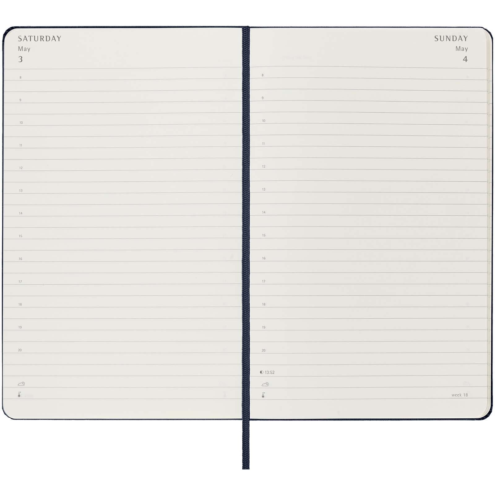 Planen Sie jeden Tag bis ins kleinste Detail mit dem Moleskine Hardcover Tagesplaner für 12 Monate. Dieser Kalender ist von Januar bis Dezember 2026 datiert und so formatiert, dass auf jeder Seite ein ganzer Tag abgebildet ist, damit Sie genügend Platz haben, um Ereignisse, Termine, Aufgaben, Erinnerungen und Pläne festzuhalten. Im Laufe des Jahres wird er zu einem physischen Tagebuch, in dem Sie Tag für Tag festhalten, was Sie alles erreicht haben. Er enthält elfenbeinfarbenes, säurefreies Papier, einen schwarzen, elastischen Verschluss, ein Seitenband, eine farblich abgestimmte, erweiterbare Innentasche und Aufkleber zur persönlichen Gestaltung sowie Jahresaufkleber für den Buchrücken.
