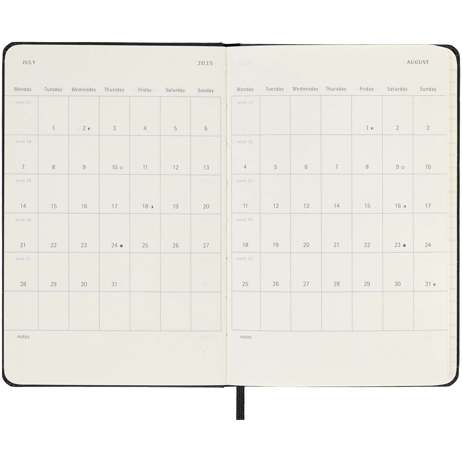 Planen Sie jeden Tag bis ins kleinste Detail mit dem Moleskine 12-Monats-Tagesplaner mit Hardcover. Dieser Kalender im Taschenformat ist für den Zeitraum von Januar bis Dezember 2026 konzipiert und zeigt einen ganzen Tag pro Seite an - damit Sie genügend Platz haben, um Ereignisse, Termine, Aufgaben, Erinnerungen und Pläne festzuhalten. Im Laufe des Jahres wächst er zu einem physischen Tag-für-Tag-Bericht über alles Erreichte heran. Er enthält elfenbeinfarbenes, säurefreies Papier, einen schwarzen, elastischen Verschluss, ein Seitenband, eine farblich abgestimmte, erweiterbare Innentasche und Aufkleber zur persönlichen Gestaltung sowie Jahresaufkleber für den Buchrücken.