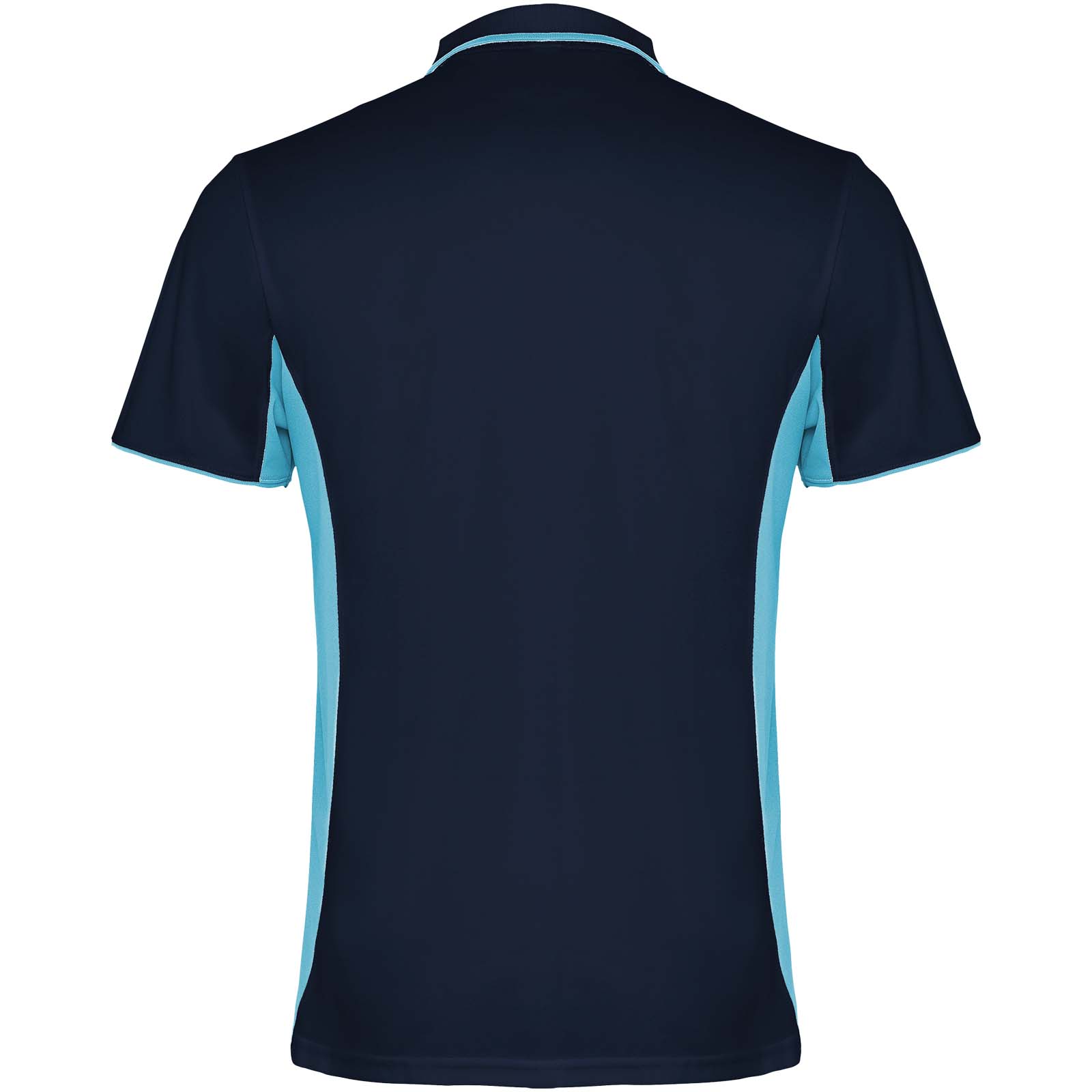 Zweifarbige Kombination. Strickkragen mit 3er-Knopfleiste, verdeckten Nähten und Streifen in Kontrastfarbe. Atmungsaktives Funktionsmaterial, leicht zu waschen und zu trocknen. Abnehmbares Etikett.