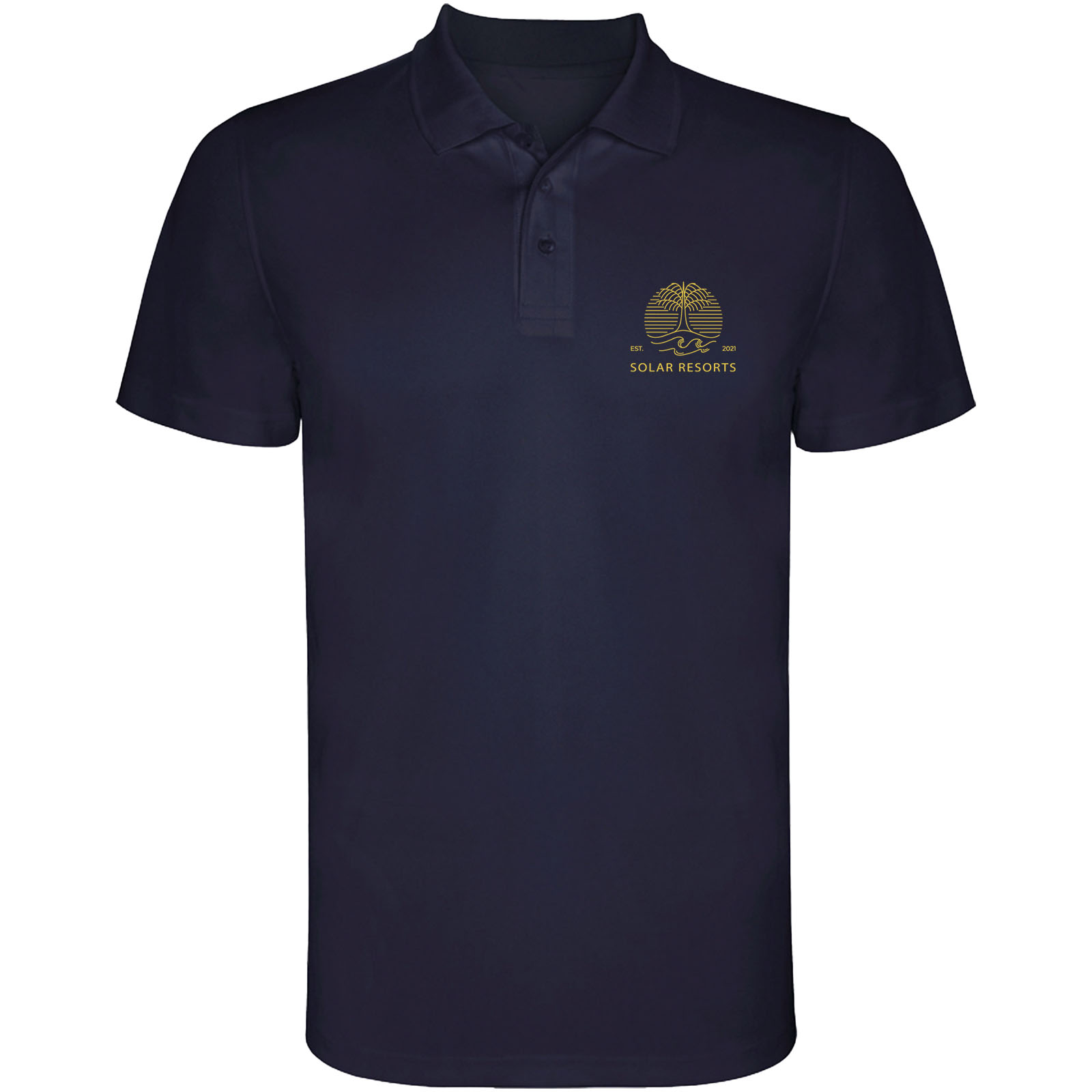 Kurzärmeliges Funktions-Poloshirt. Gestrickter Kragen mit 3-Knopfleiste. Atmungsaktives, leicht zu waschendes und zu trocknendes Material. Herausnehmbares Etikett. Technisches Gewebe. Atmungsaktiver Stoff. Das Modell ist 184 cm groß und trägt Größe L.